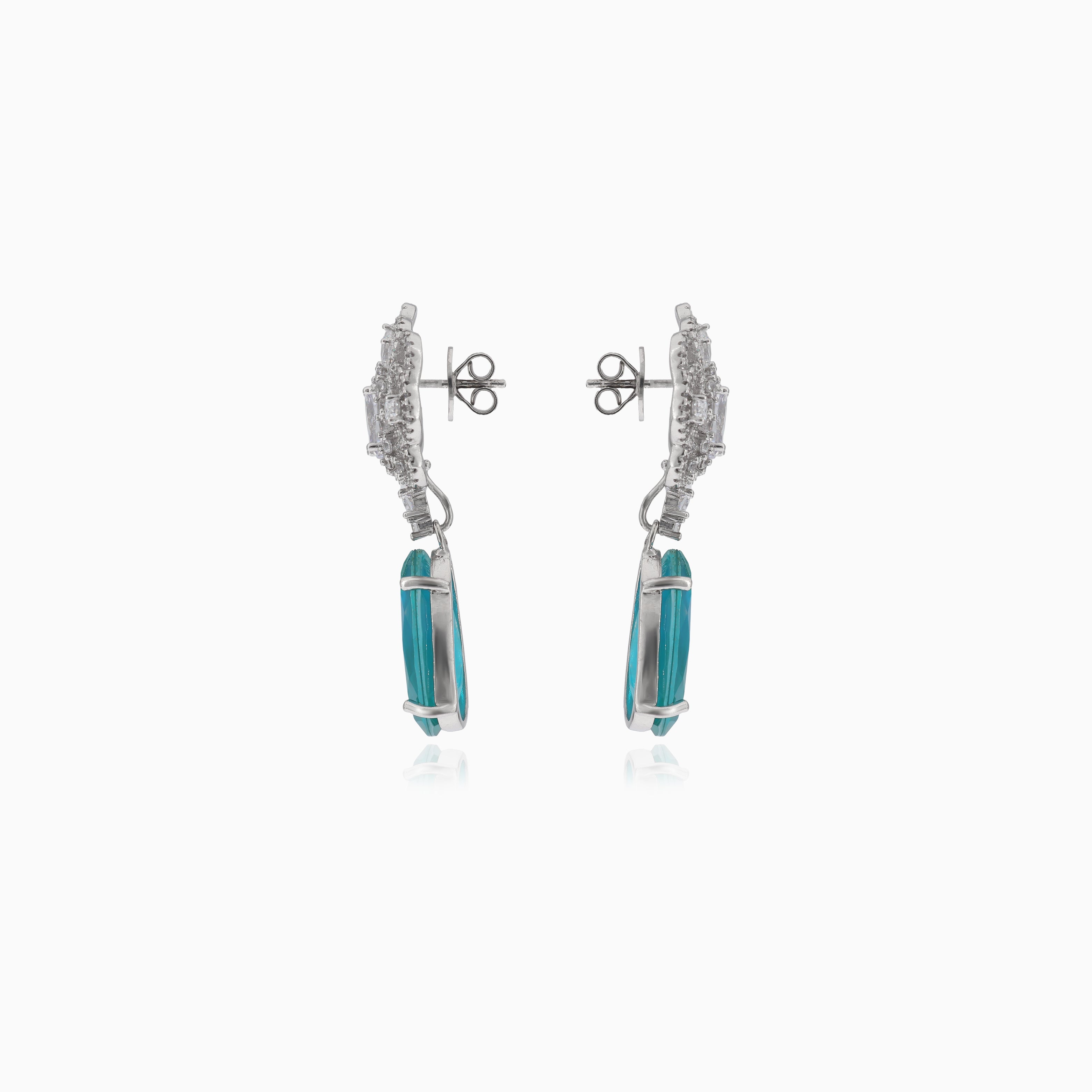 Elegant silver earrings featuring a dangle synthetic tourmeline stone accented with sparkling cubic zirconia.