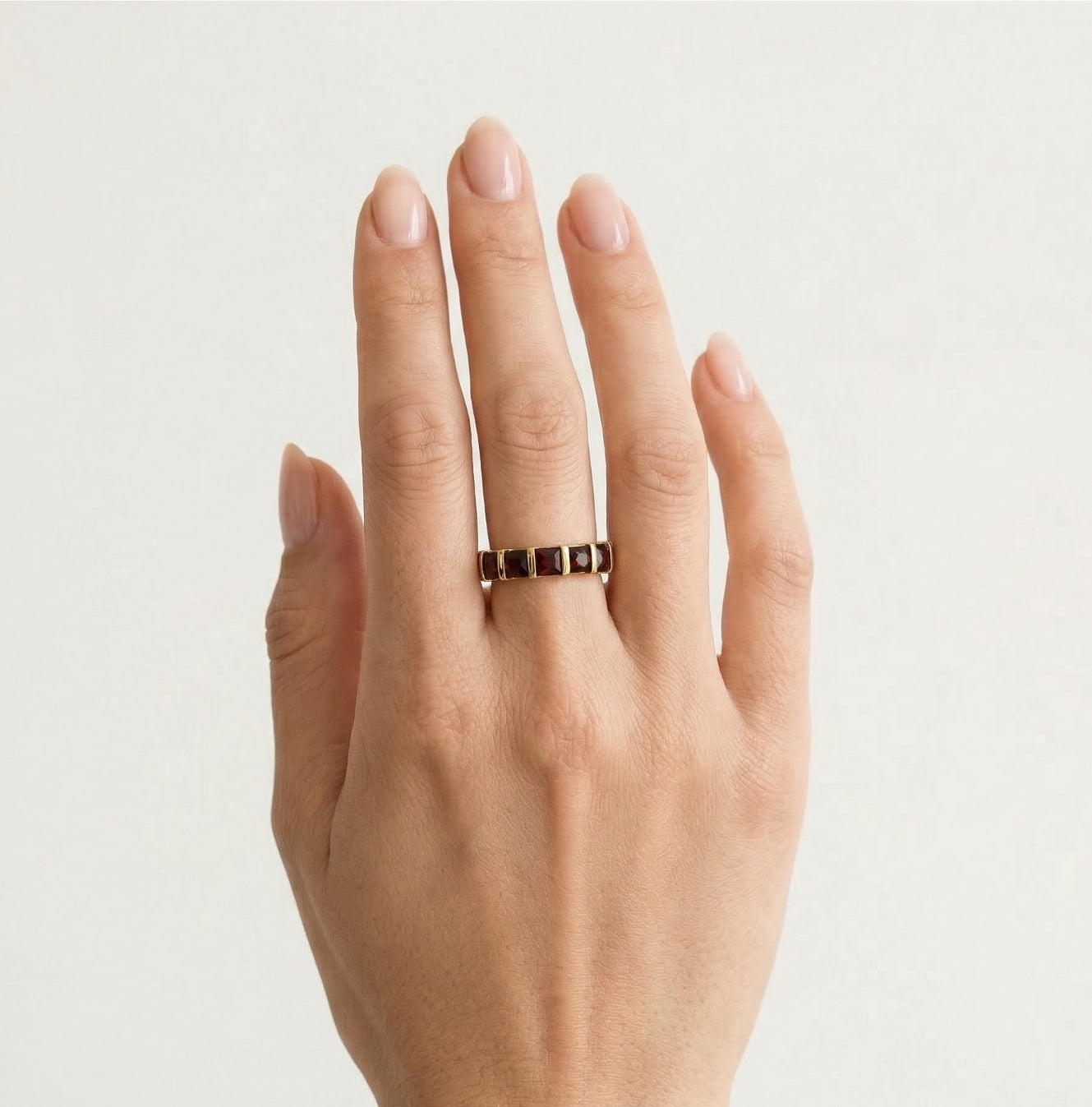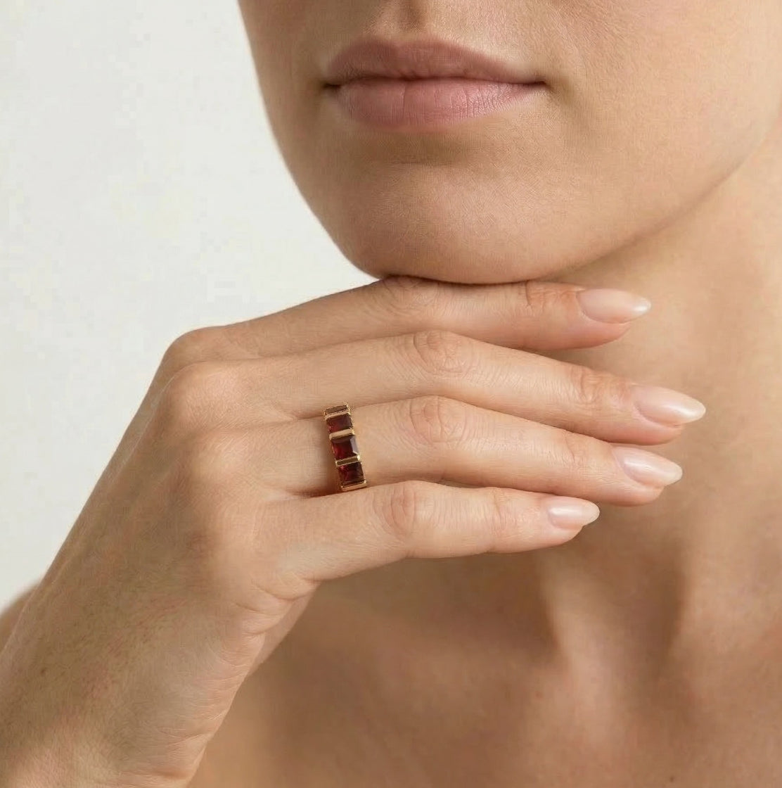 Square princess cut garnet gold ring