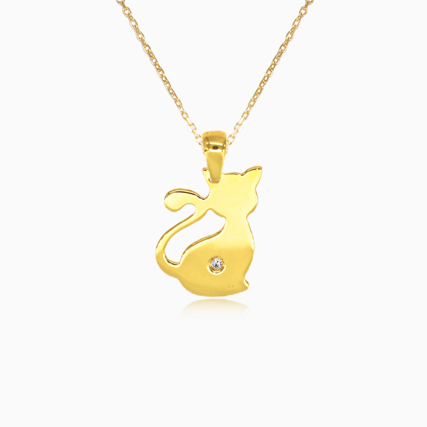 Gold pendant cat with solitaire zircon