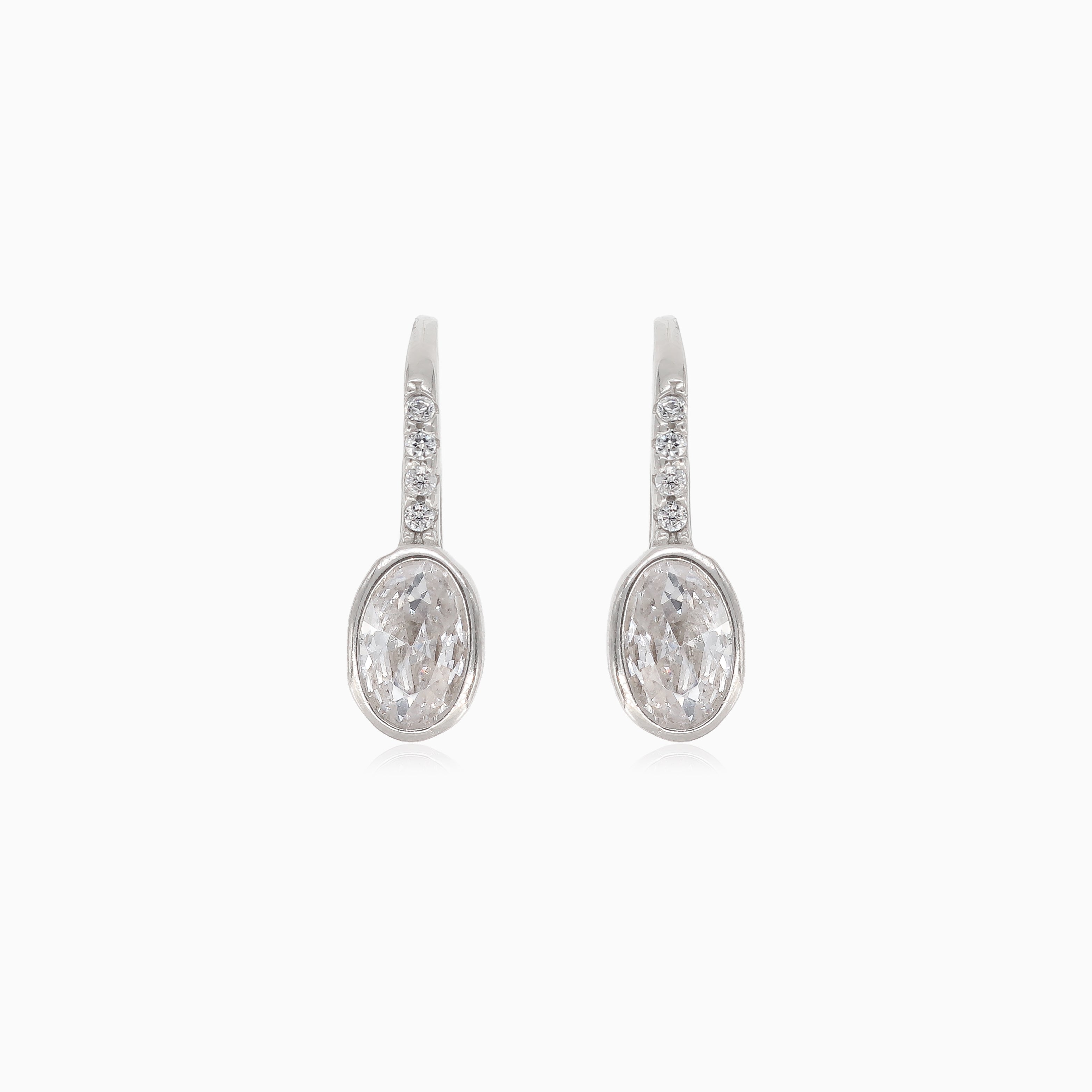 Silver drop earring with oval cubic zirconia
