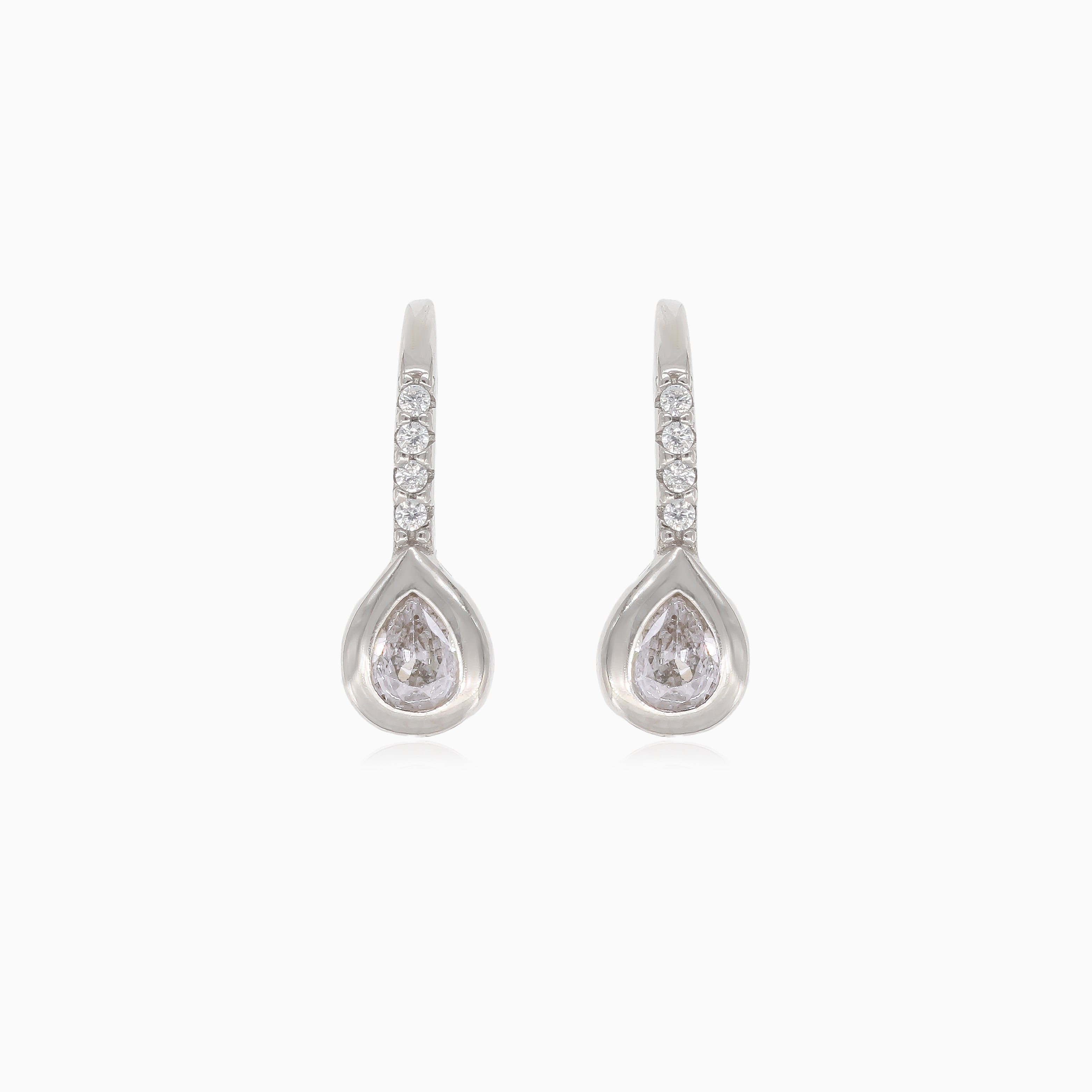 Silver drop earrings with pear-cut cubic zirconia
