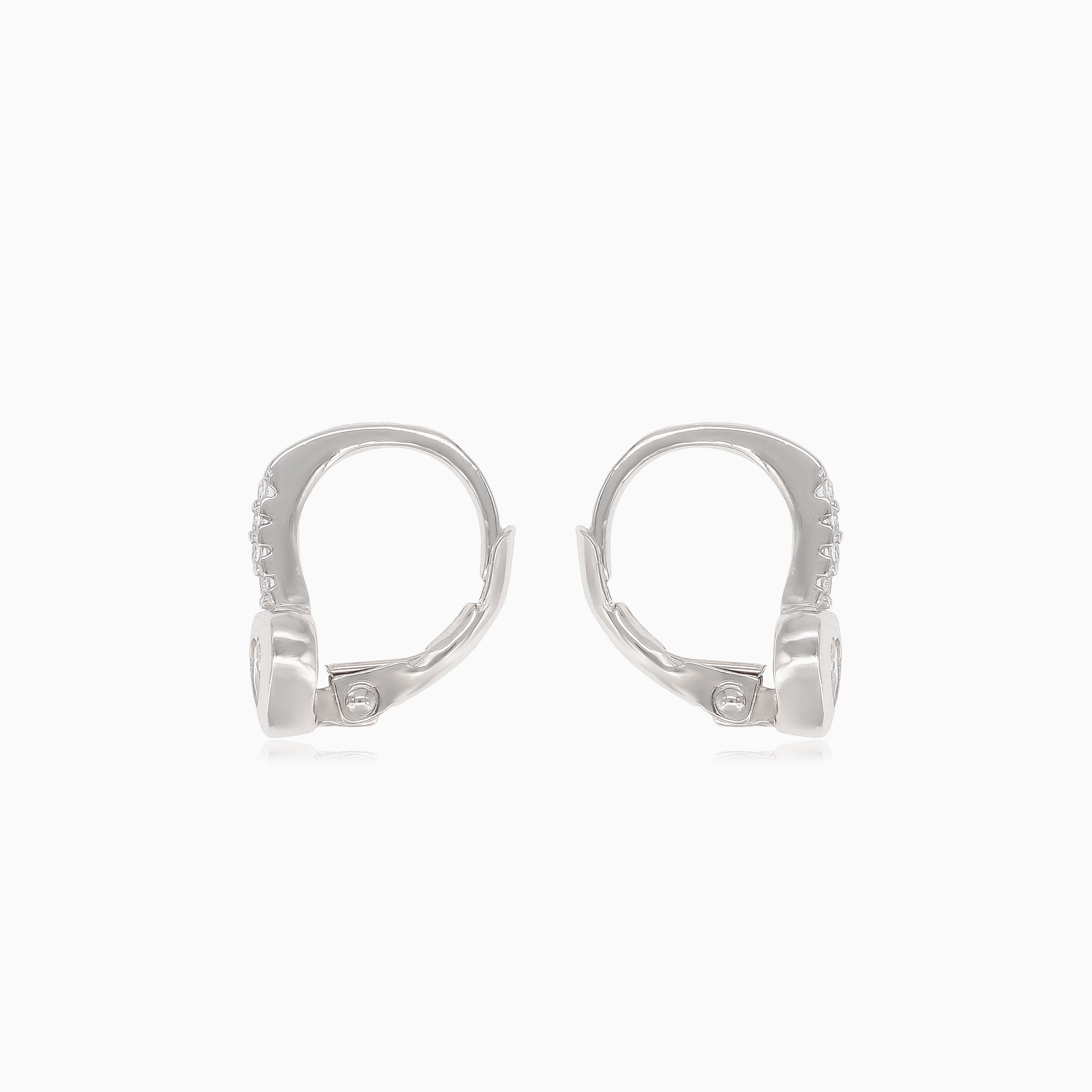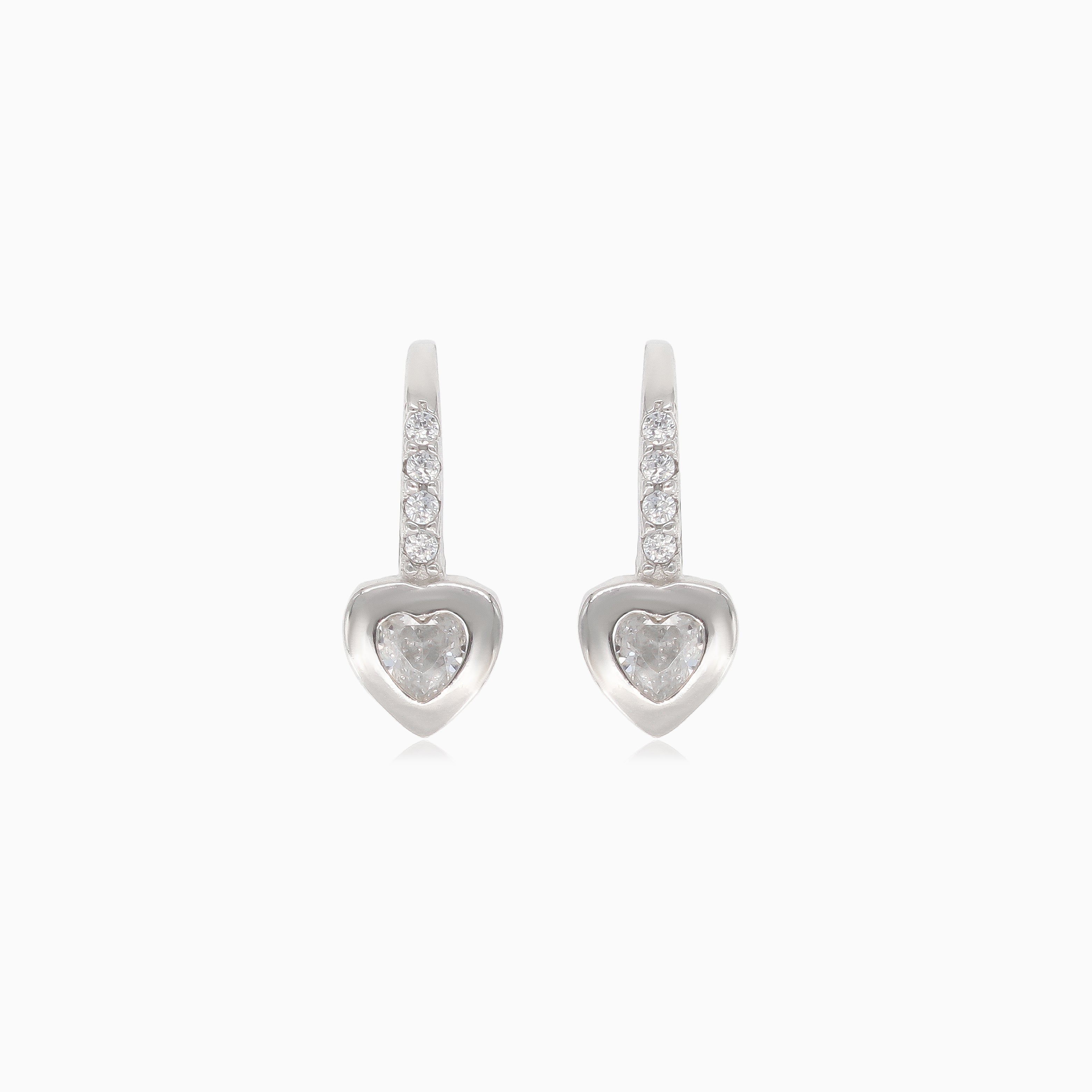 Elegant silver earrings featuring a heart-shaped cubic zirconia centerpiece surrounded by small round zircon stones, designed with lever back closures for women and children.