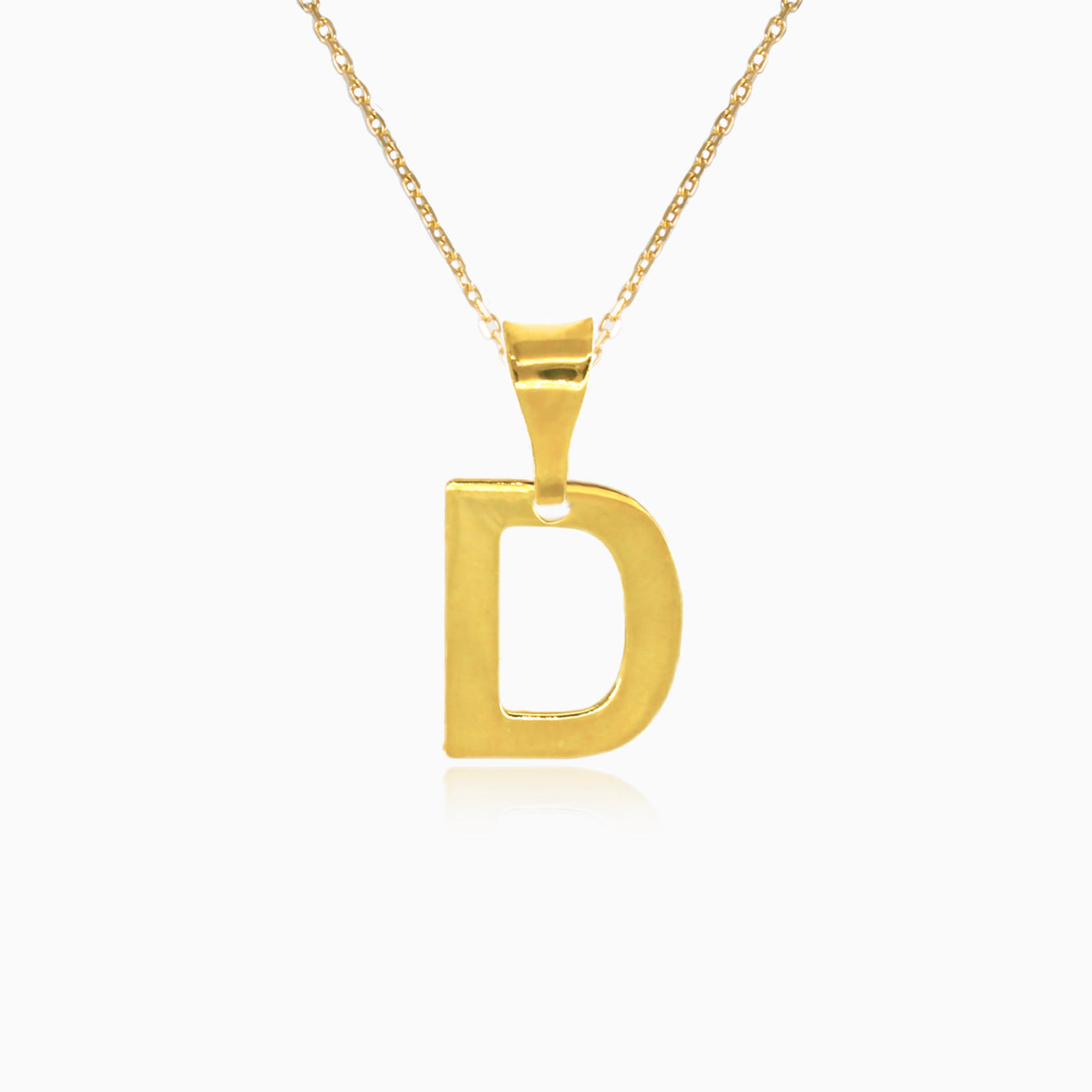 This beautiful letter "D" pendant is made of 14kt yellow gold and has a high shine to add elegance. The jewel has a hanging loop for easy attachment to a chain.