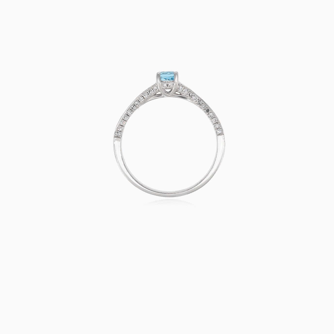Elegant white gold ring with diamond and blue topaz