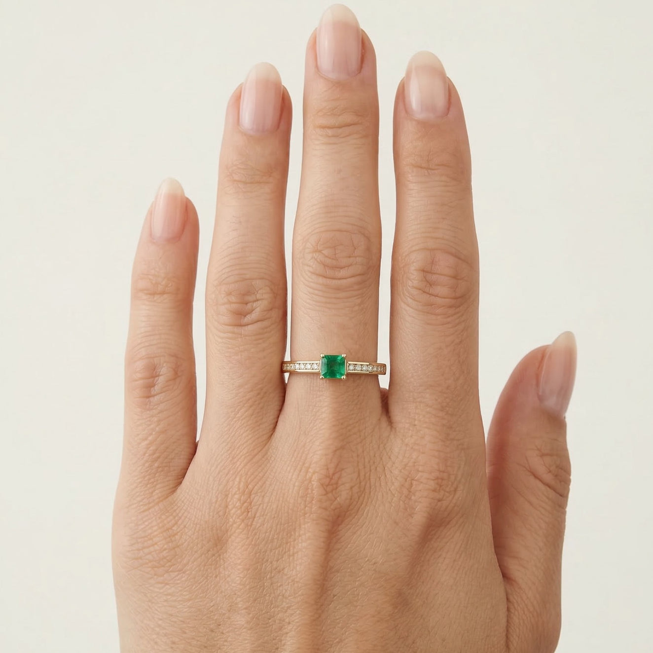 Sophisticated gold ring with emerald and diamonds