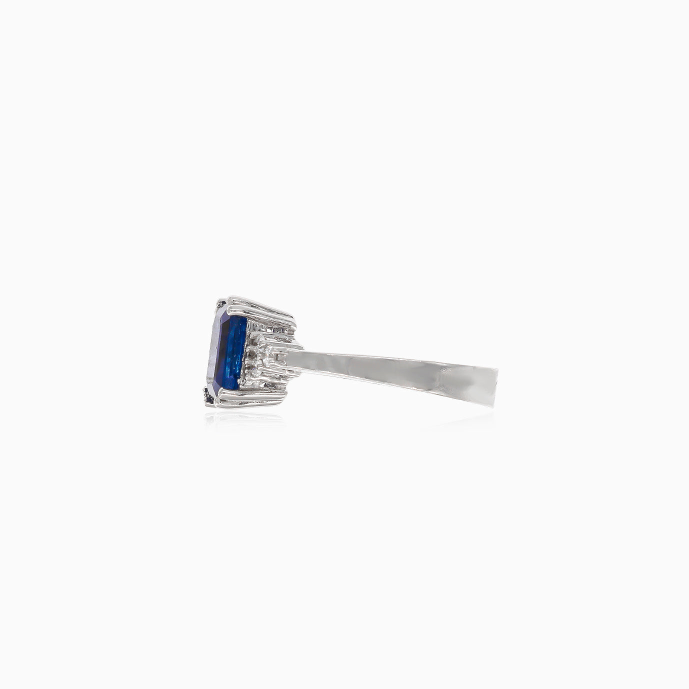 White gold diamond and blue sapphire ring