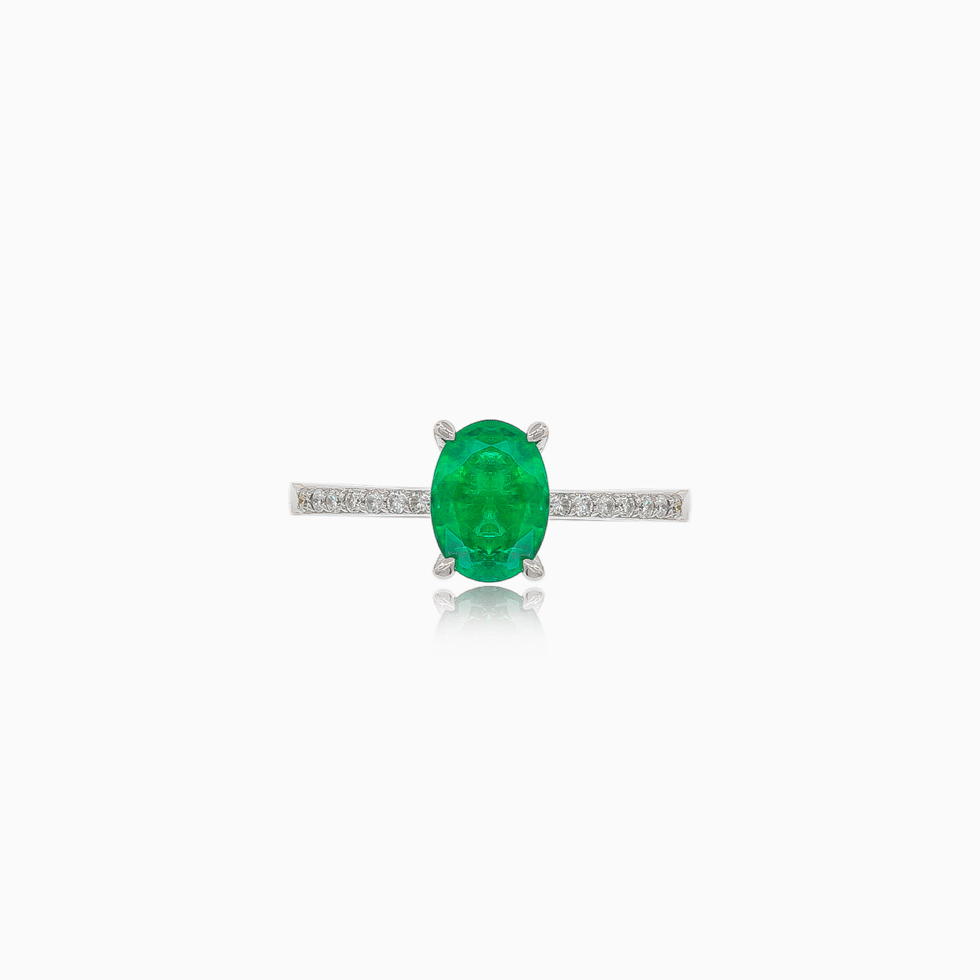 White gold ring with oval emerald and diamonds