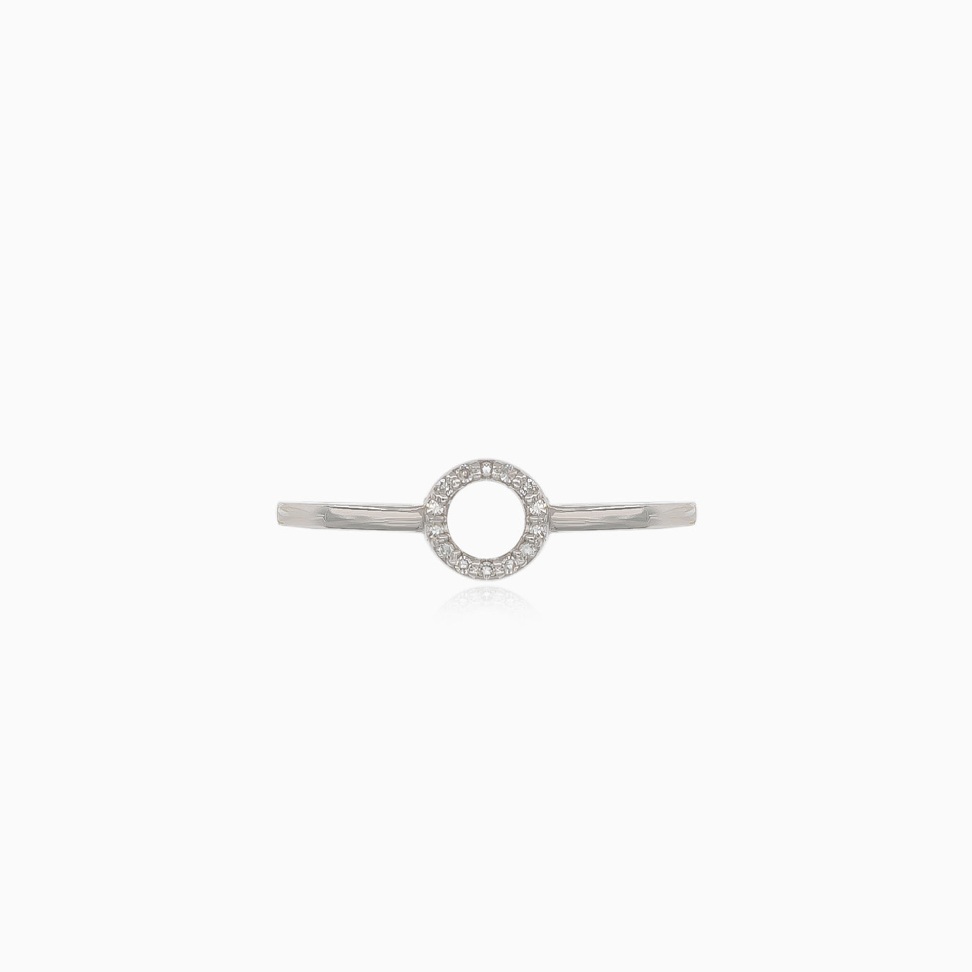 Elegant 18kt white gold ring featuring a small circle adorned with 0.03ct diamonds boasting VS/SI clarity and G color.
