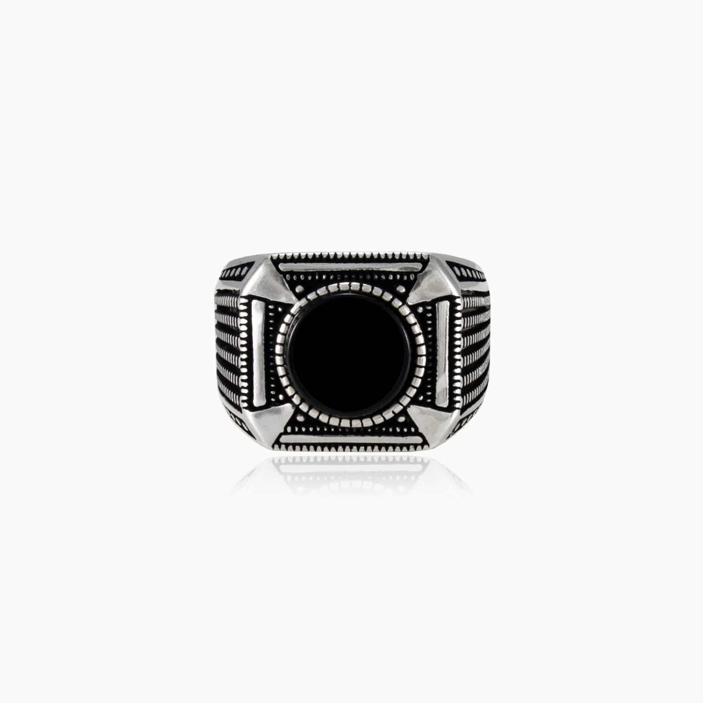 Round onyx detailed men ring