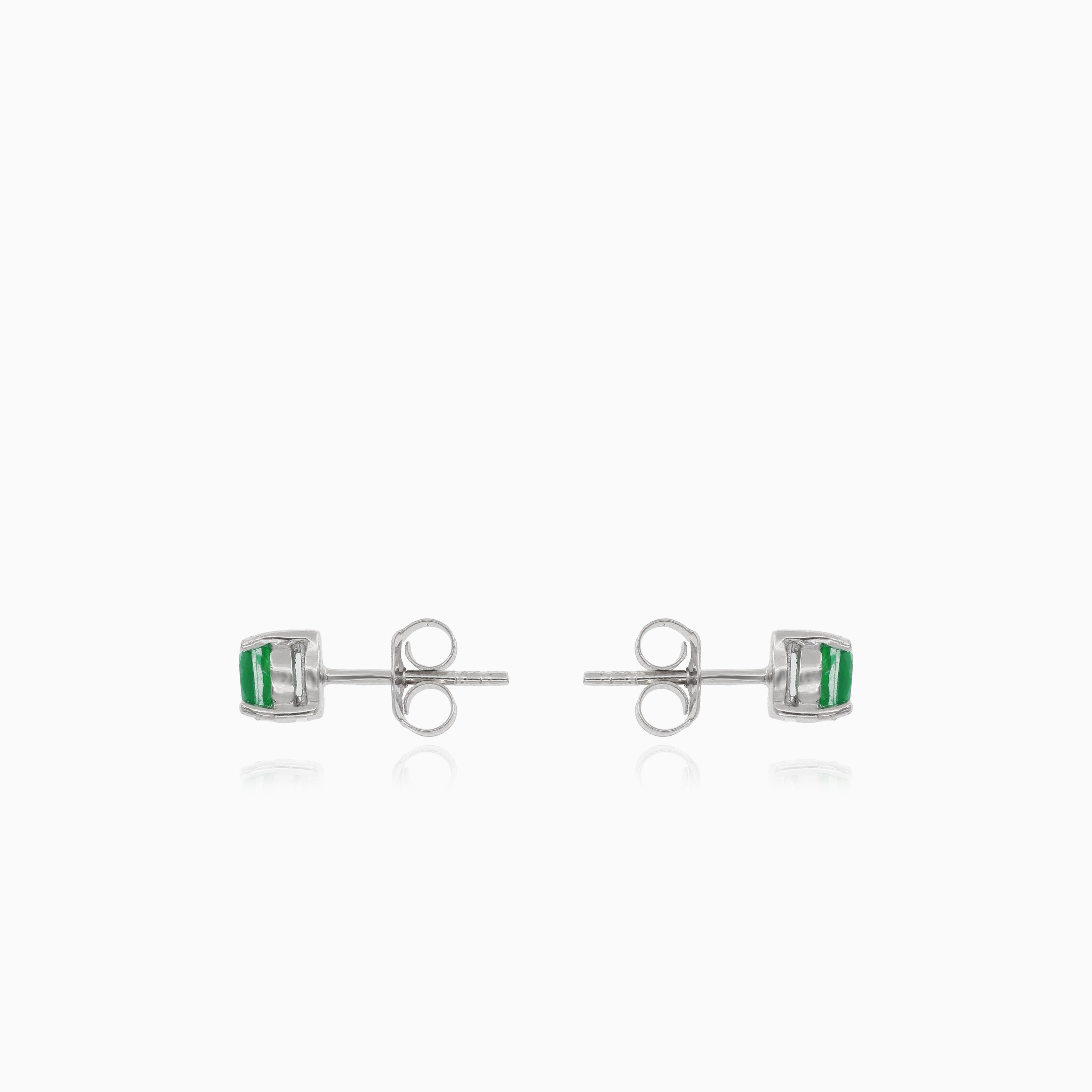 Silver small stud earrings with synthetic emerald