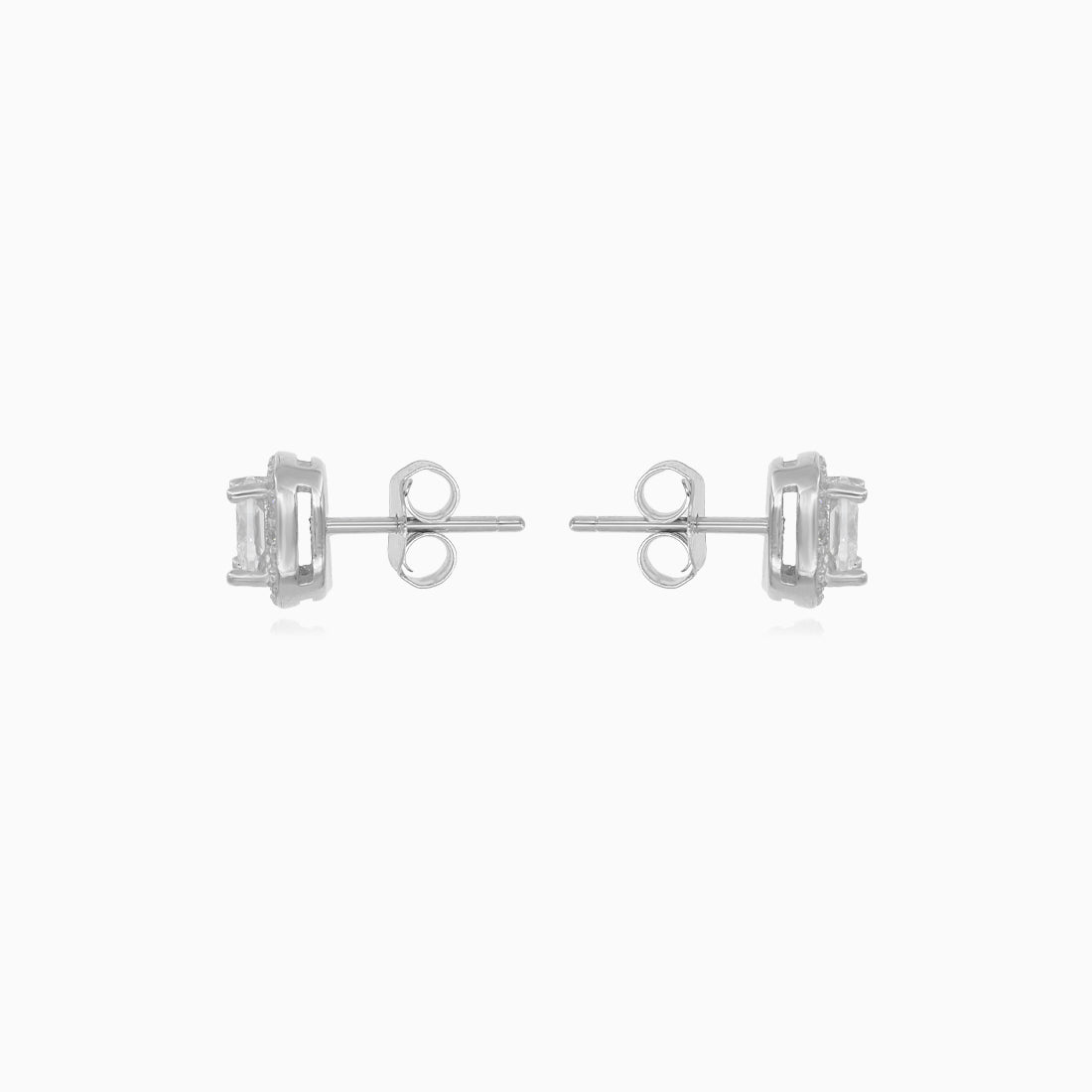 Sterling silver earrings combined with cushion cut cubic zirconia and square halo around it.