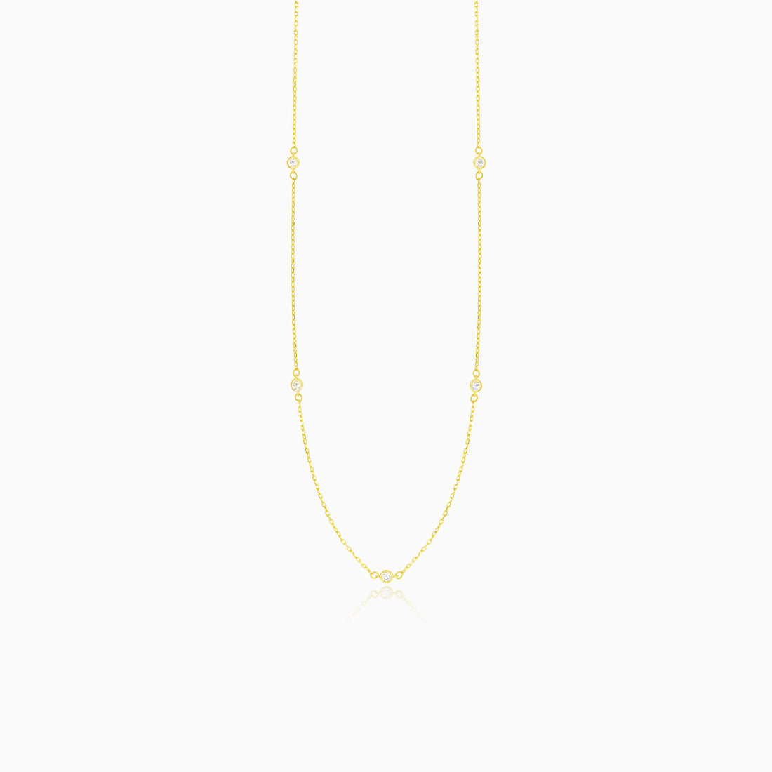 This delicate chain necklace is made of 14kt yellow gold. The fine details of the five cubic brilliant cut cubic zirconia beautifully complete the look. The jewel is fitted with a spring ring clasp for easy and secure wearing.