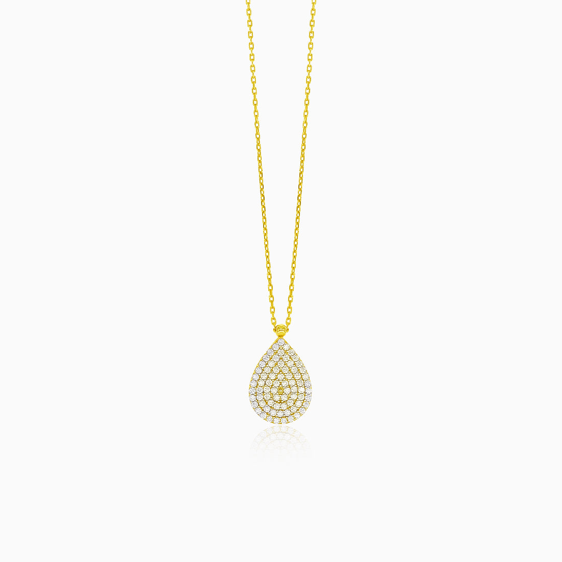 This captivating necklace, crafted from 14ct yellow gold, features a teardrop pendant adorned with shimmering cubic zirconias. Secured with a spring ring clasp, this necklace adds a touch of elegance to any outfit.