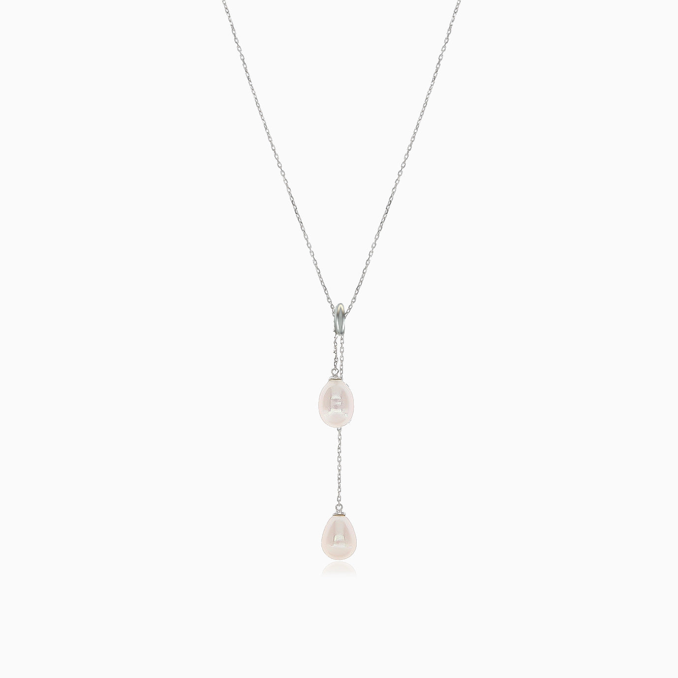 A graceful silver necklace adorned with luminous pearls, exuding timeless elegance and sophistication.