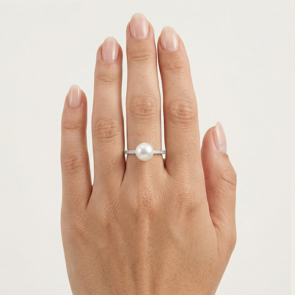 Freshwater pearl and cubic zirconia gold ring