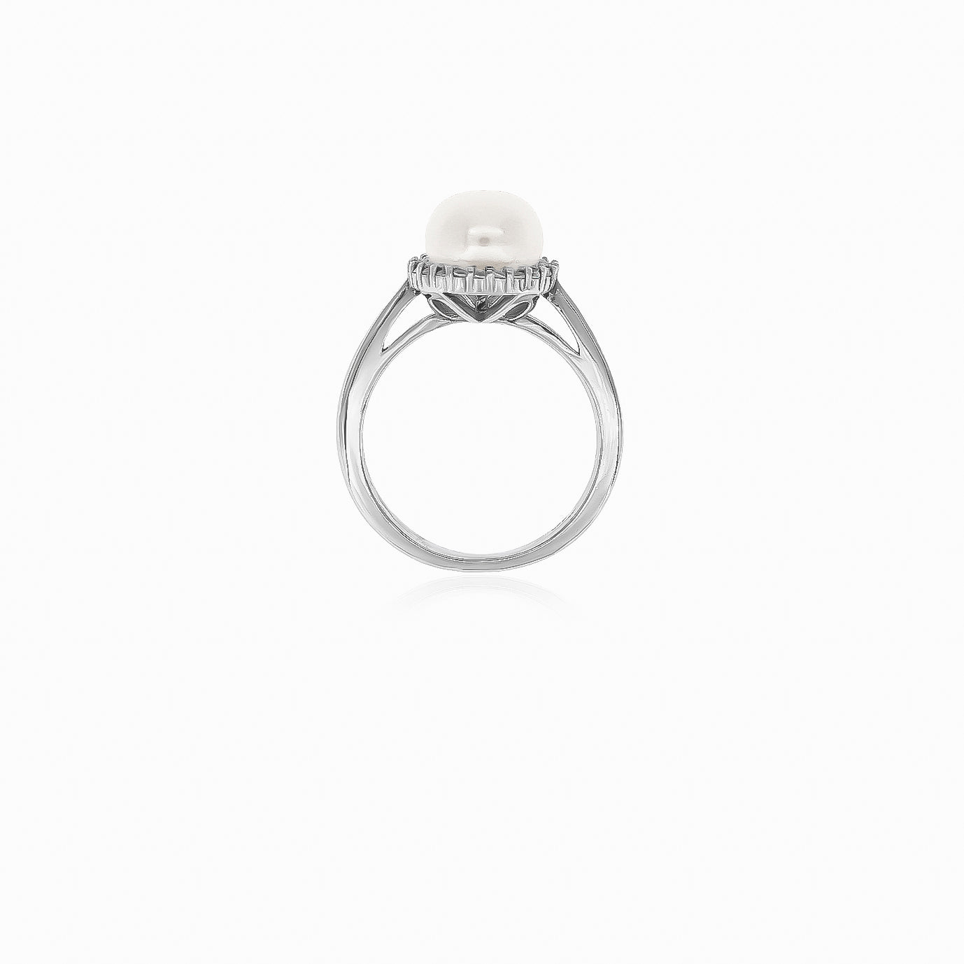 Indulge in elegance with our women's silver ring featuring a lustrous white round pearl complemented by sparkling cubic zirconia in a prong setting, a timeless piece that exudes sophistication.