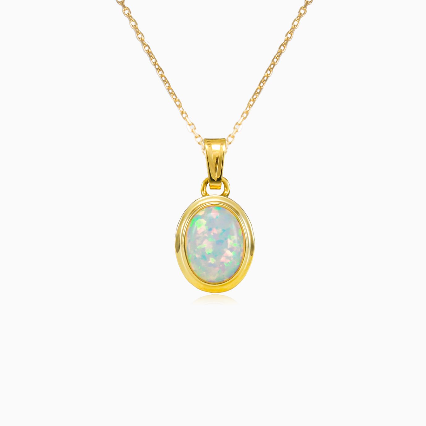 Classic 14K yellow gold pendant combined with bezel set oval cut white opal.