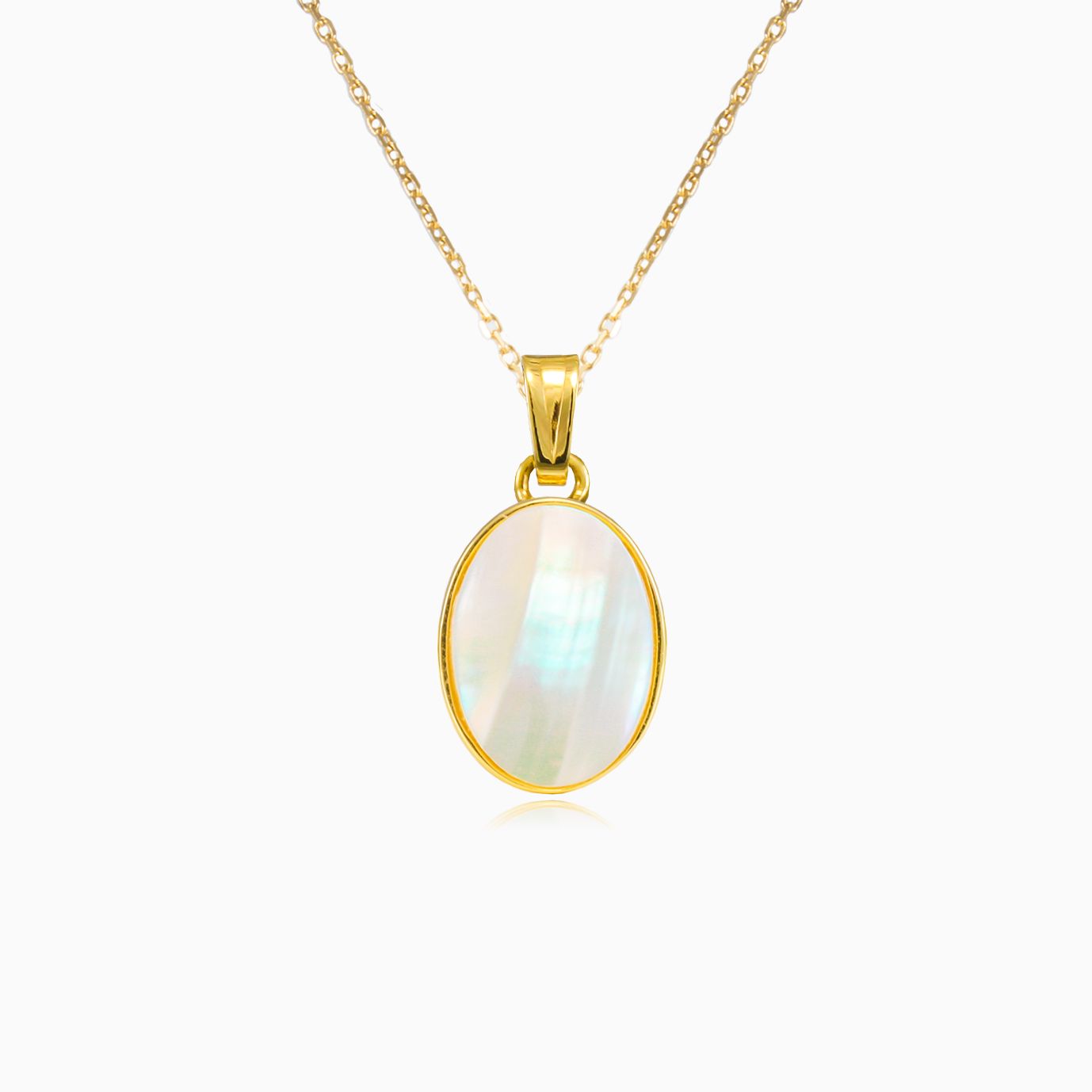 Minimalist 14K yellow gold pendant combined with bezel set oval nacre.