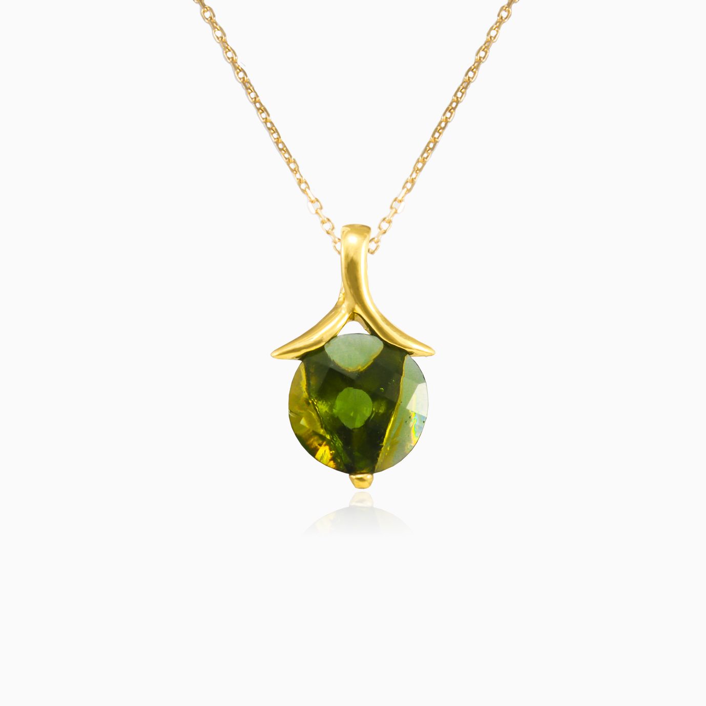 Splendid pendant made in 14K yellow gold with round-cut moldavite.