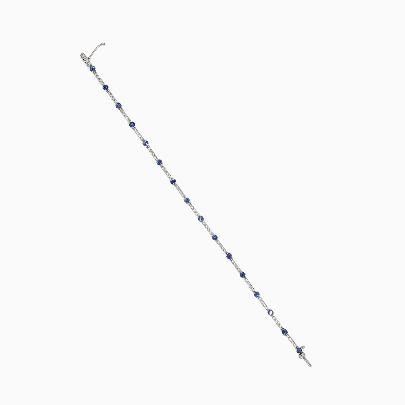 This tennis bracelet is made of 18ct white gold and it has 0.46ct VS1 GH diamond and 1.82ct sapphire. Bracelet has open box clasp closing.