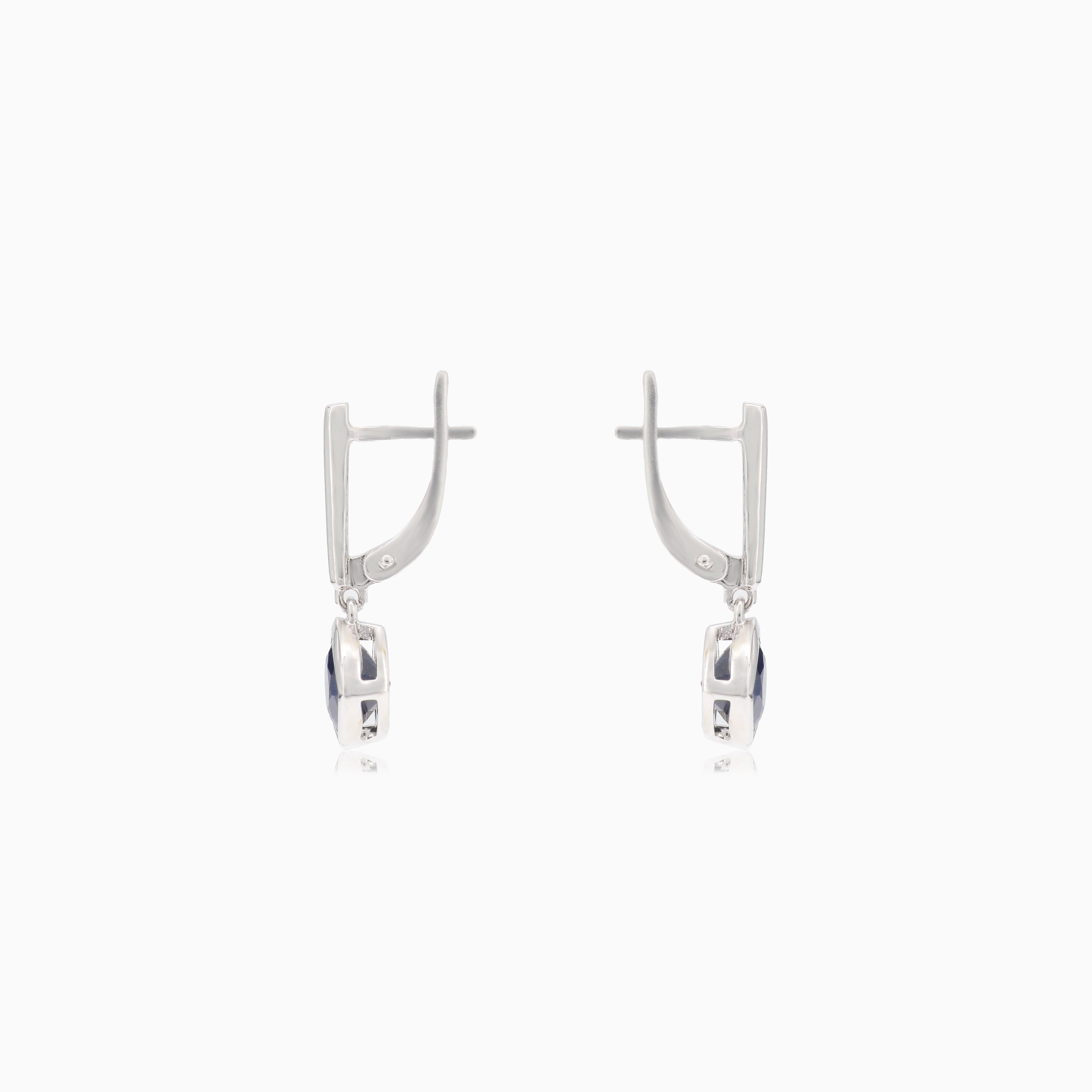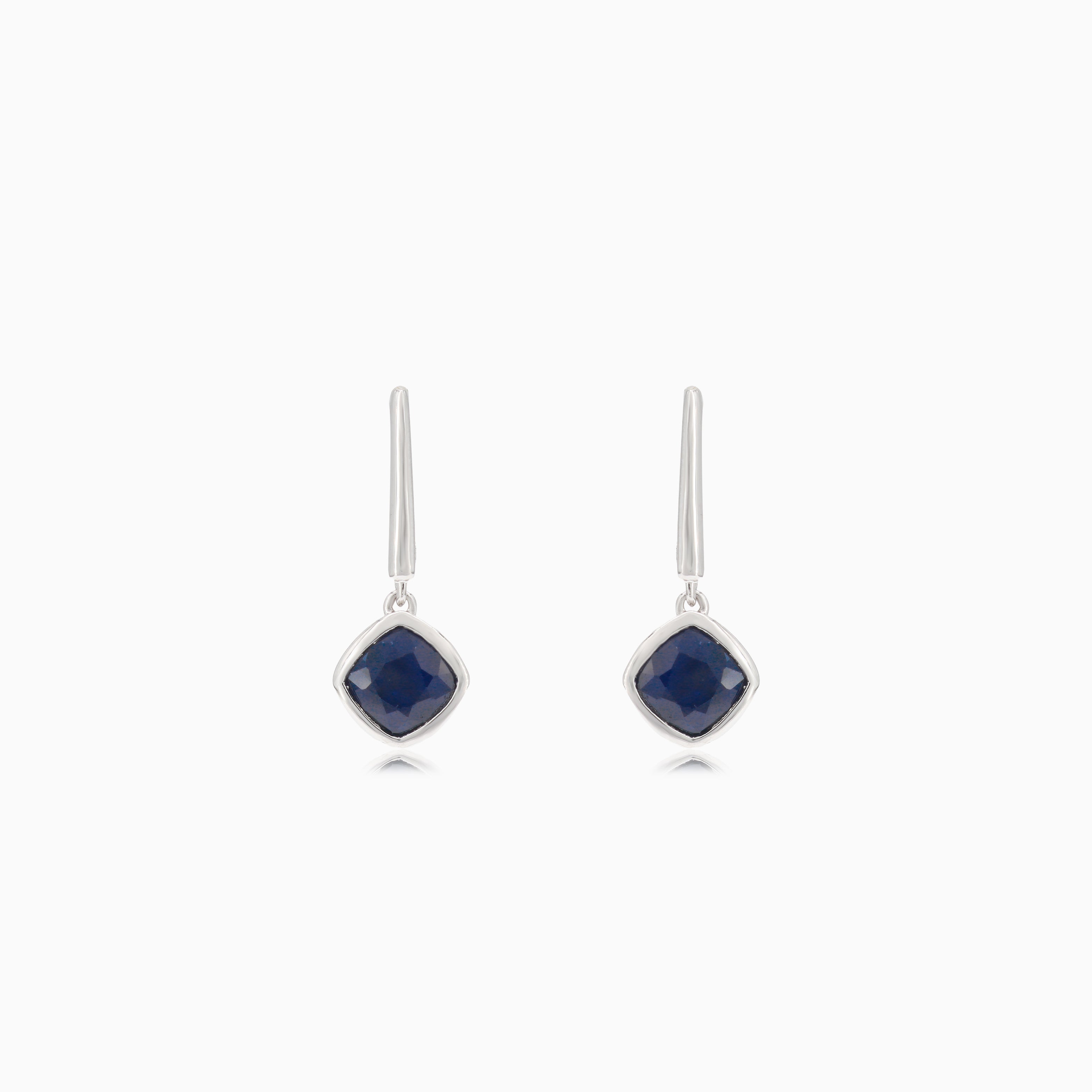 Elevate your look with these stunning silver earrings featuring a synthetic sapphire square accentuated by a secure latch back closure, adding sophistication and style to any ensemble.