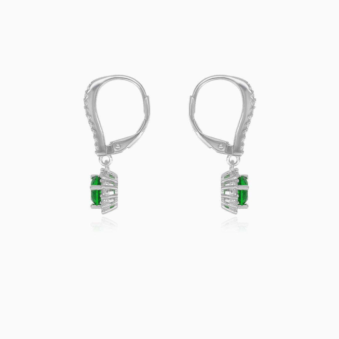 Sterling silver halo emerald earrings