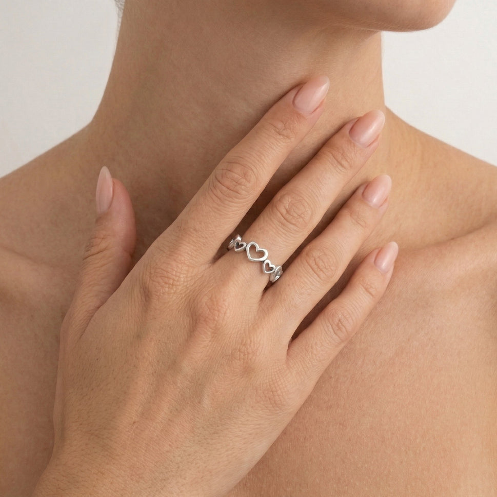 Sterling silver ring made of hearts in infinity style.
