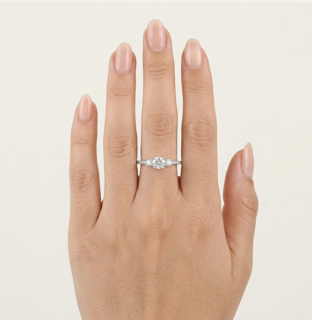 Elevate your elegance with this women's silver ring featuring cubic zirconia stones in round step-cut, delicately set in a prong setting, creating a stylish accessory for any occasion.