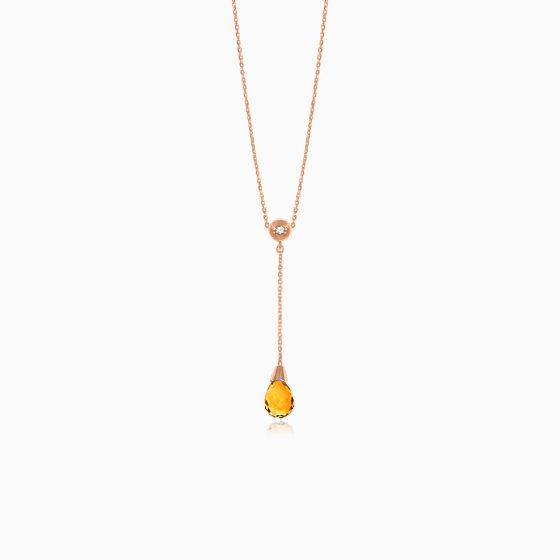 Crafted from 18kt rose gold, this elegant necklace features a brilliant-cut diamond, bezel-set, weighing 0.02ct. It beautifully complements the drop-shaped citrine with a weight of 1.25ct. The diamond is of G color and SI clarity. For easy and safe wearing, it's fastened with a lobster clasp.