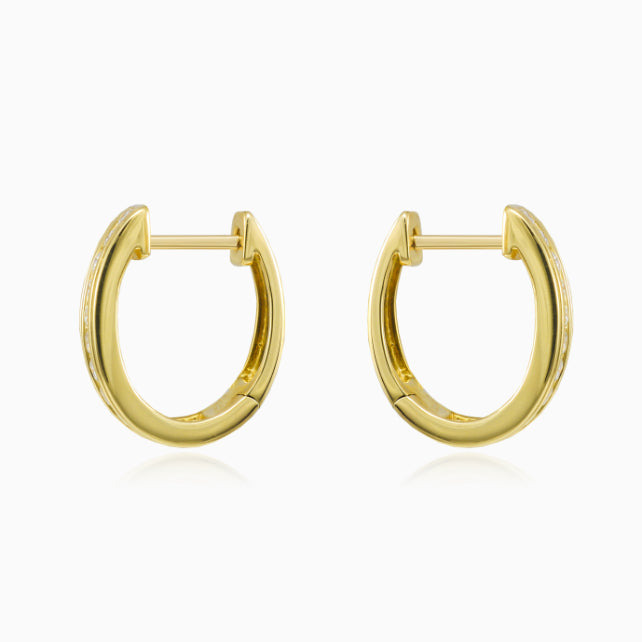 Elegant earrings in 14K yellow gold with 24 channel-set brilliant-cut diamonds.