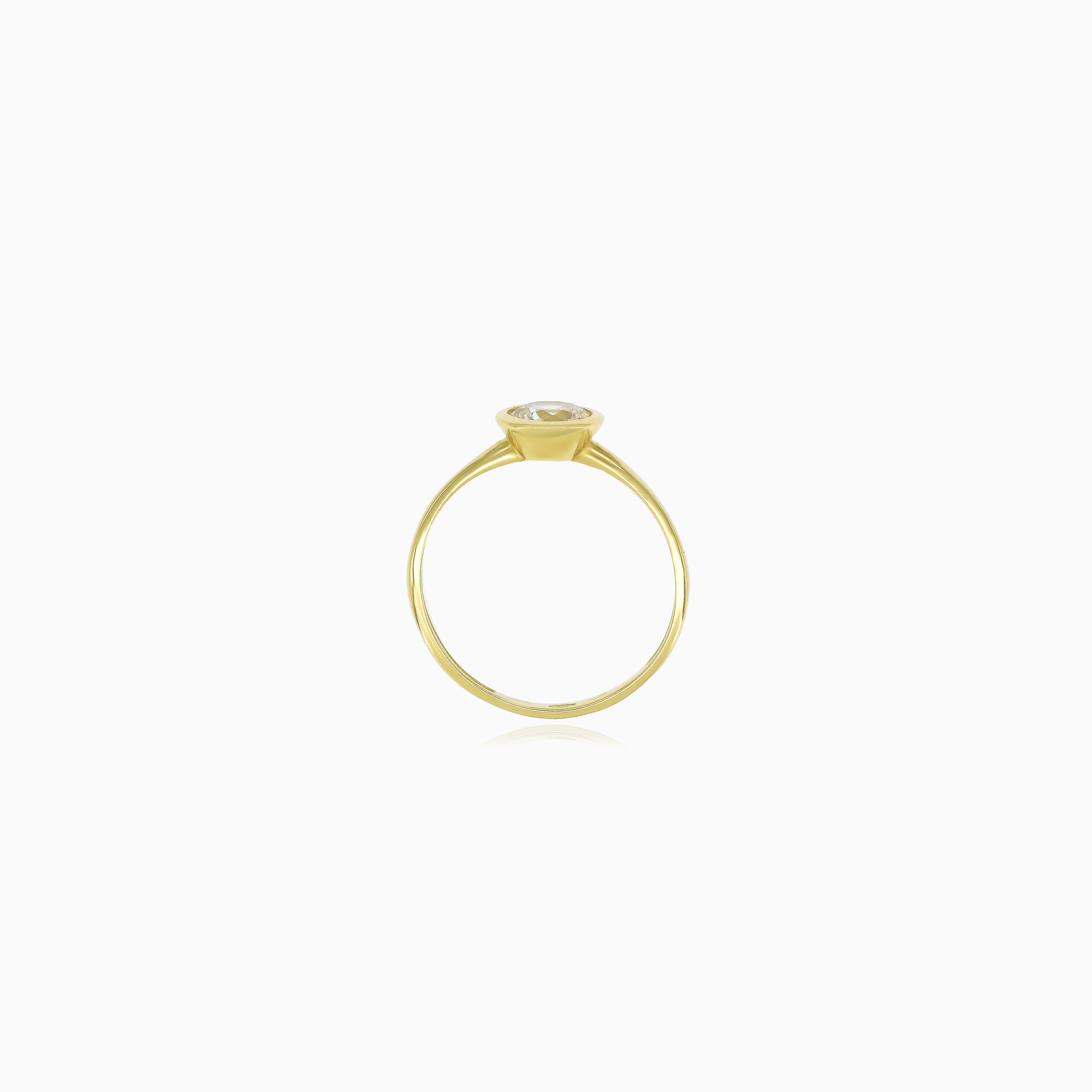 This stunning women’s ring is crafted in 14kt yellow gold, featuring a round fine step-cut cubic zircon. The bezel setting highlights the brilliance of the stone, offering a modern yet classic look. With a lustrous design, this ring exudes timeless elegance and sophistication.