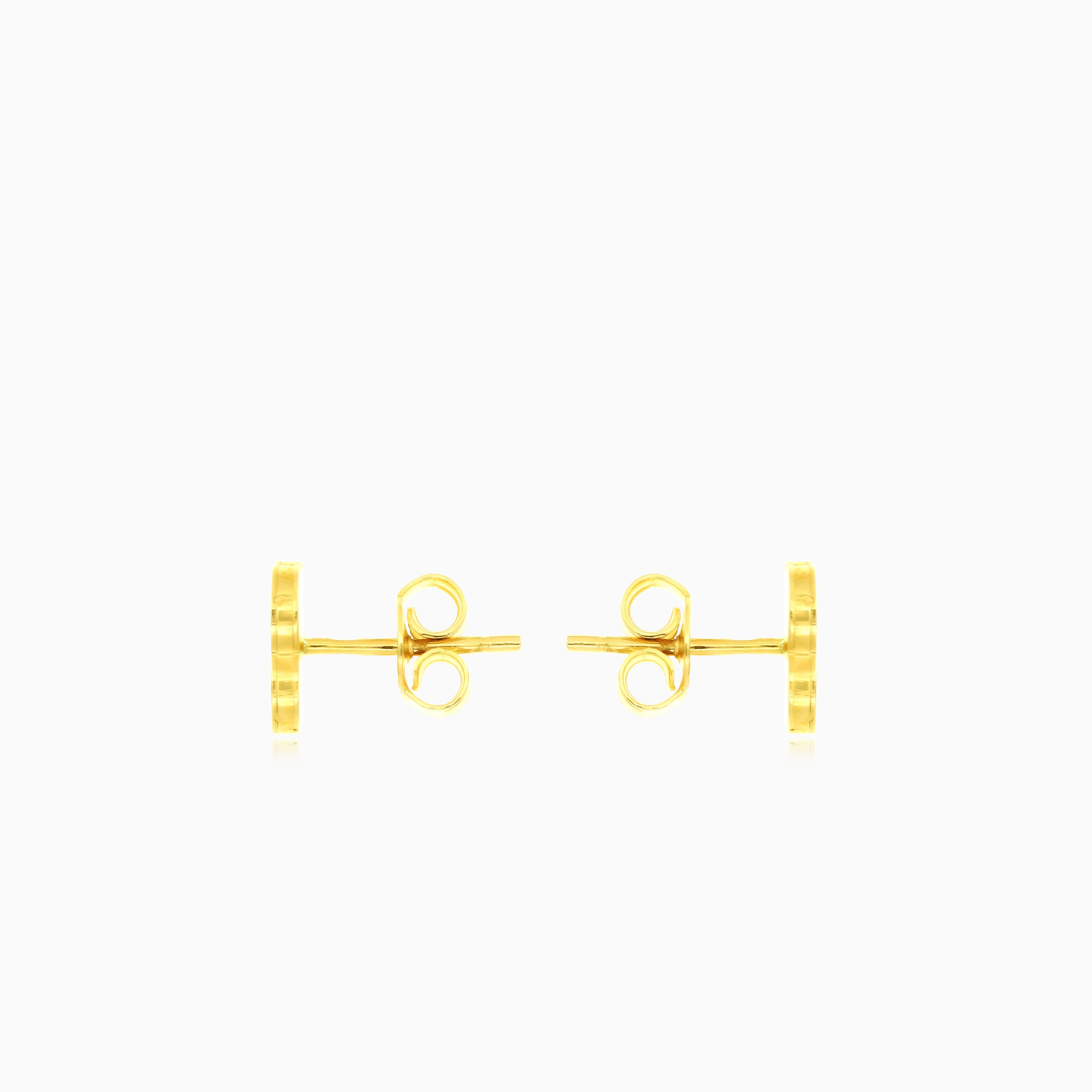 Distinctive 14kt yellow gold stud earrings showcasing black onyx in a flat cut, bezel setting, and secured with a stylish stud pousette closure.