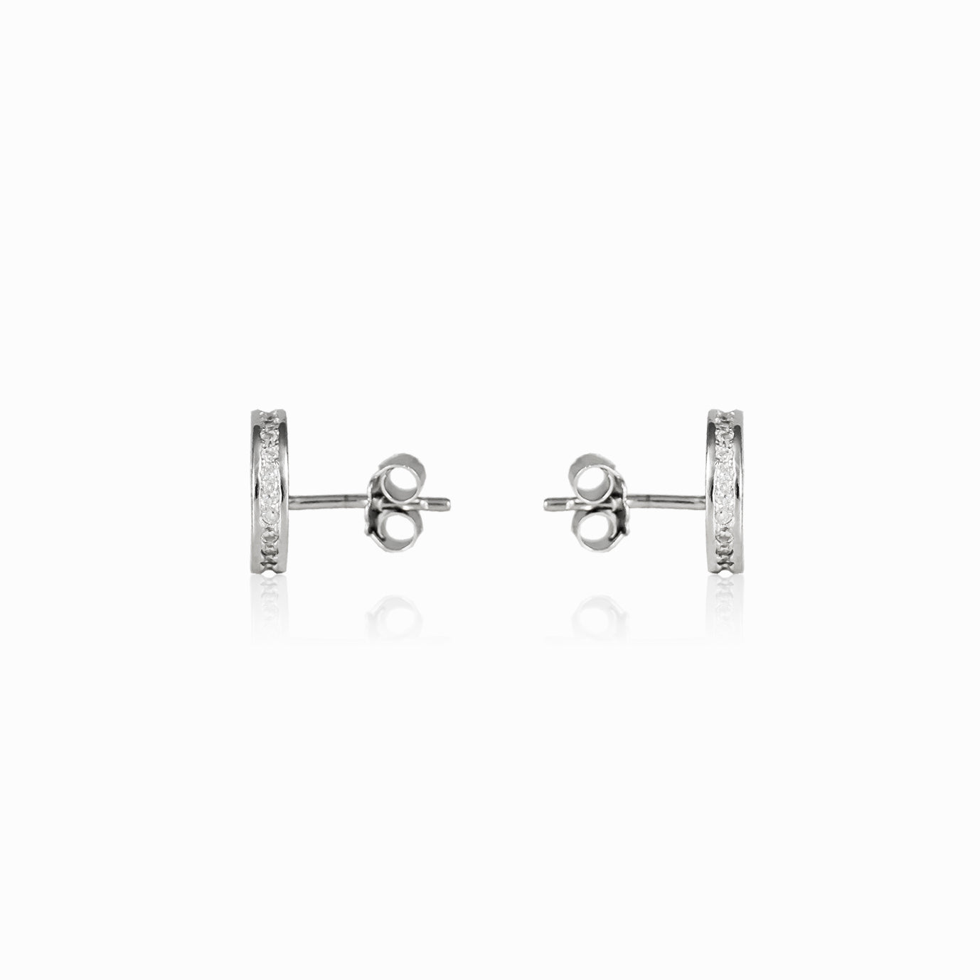 Button earrings are creations on sterling silver with micro-pave set cubic zirconia.