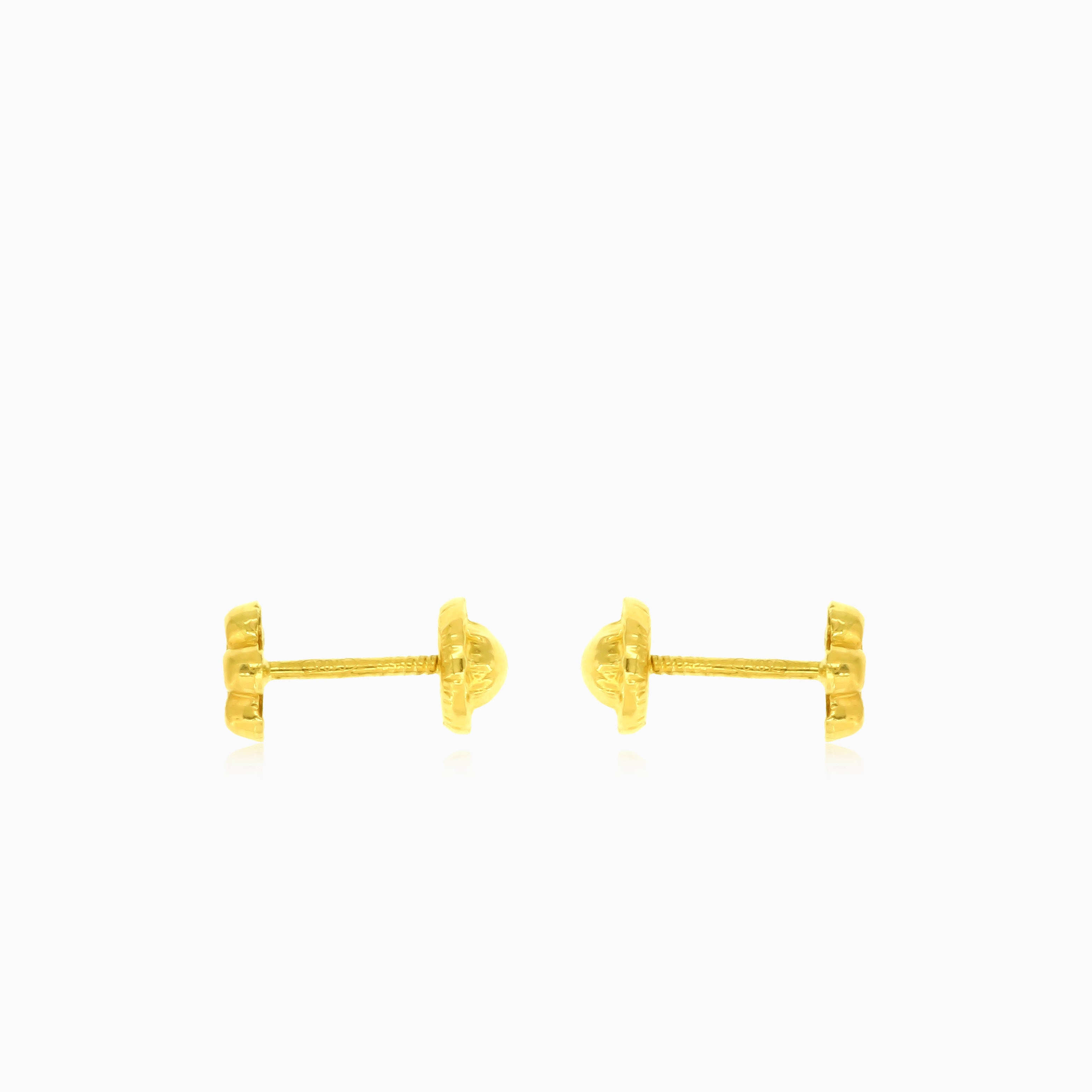 Lustrous yellow gold flower with cubic zirconia earrings