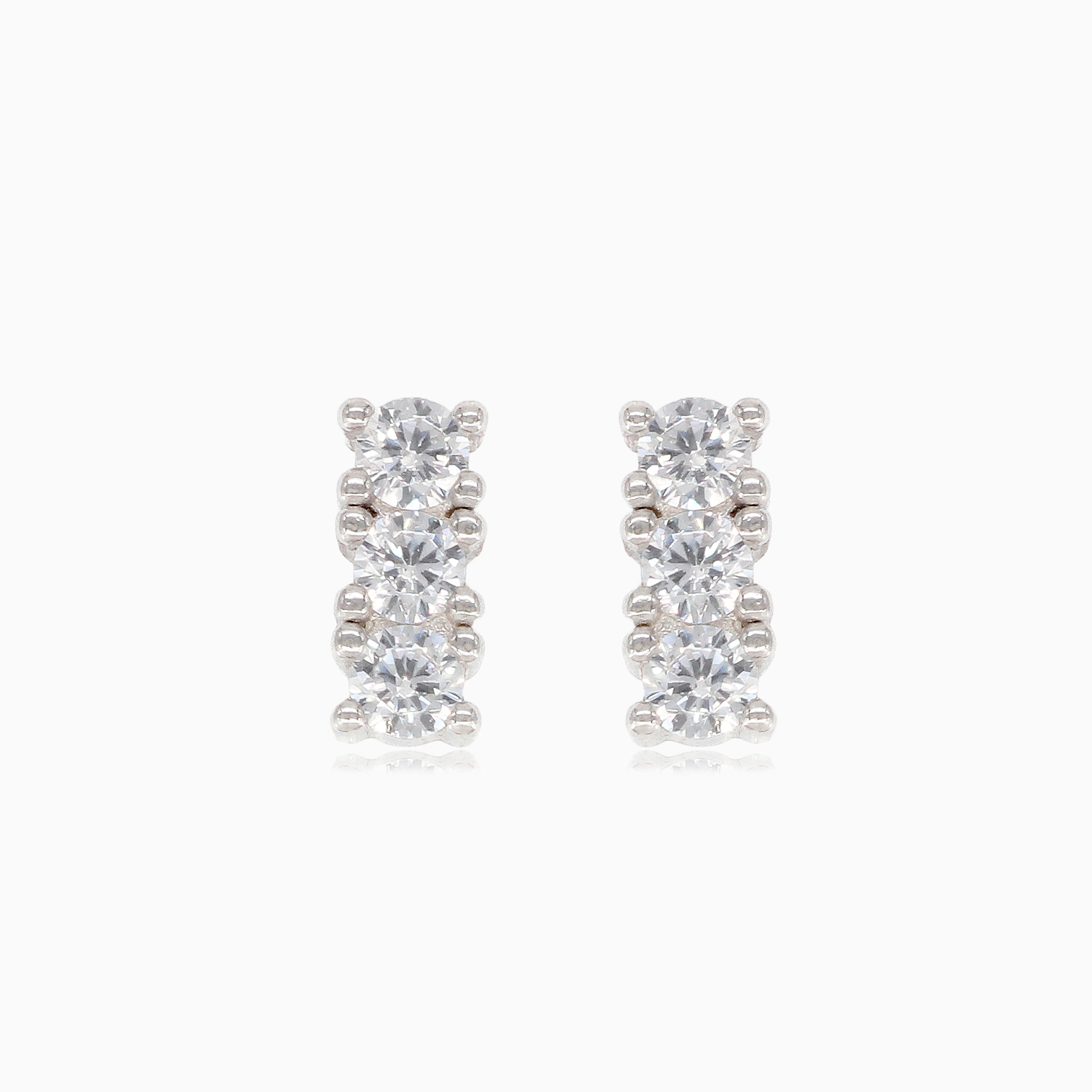 Silver cubic zirconia rectangle stud earrings
