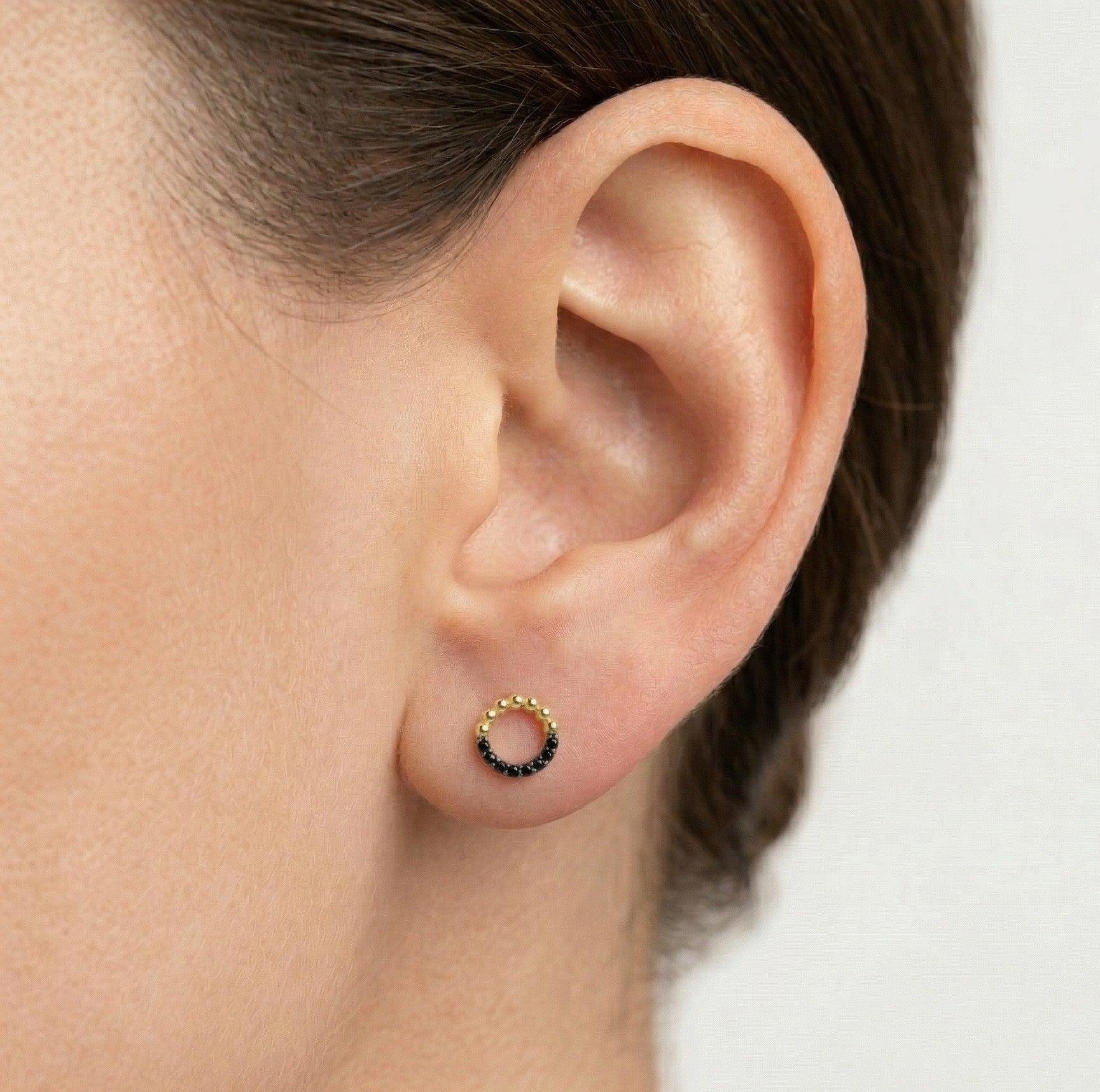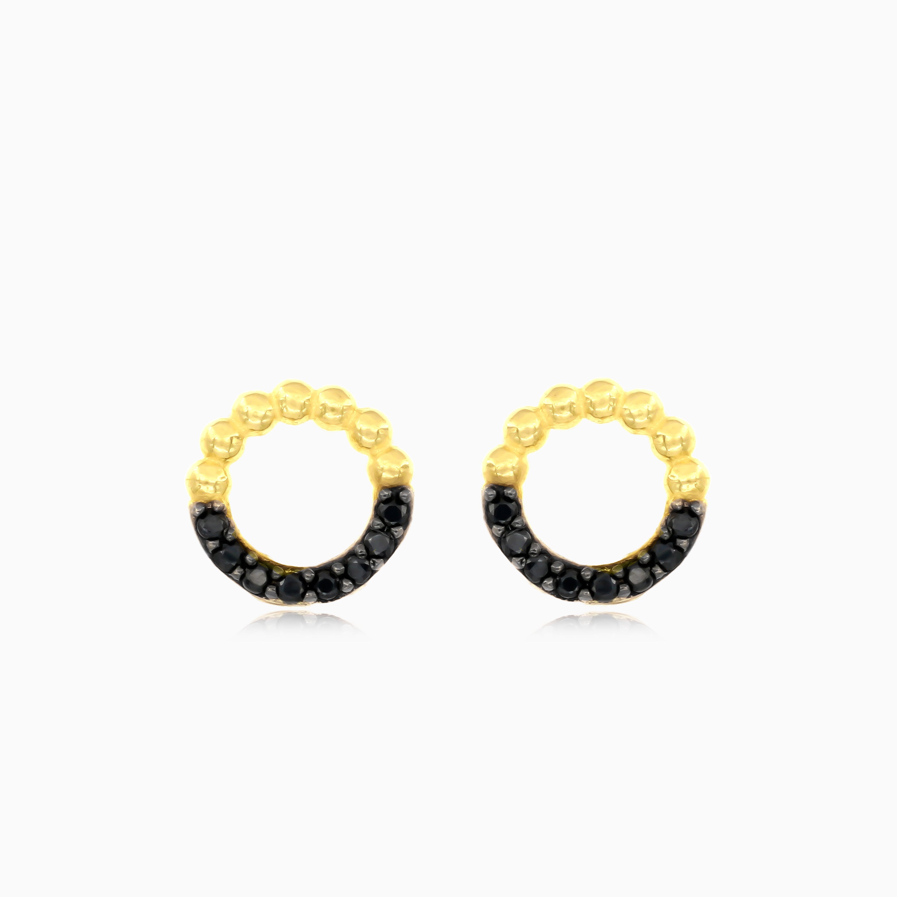 Yellow gold black onyx circle earrings