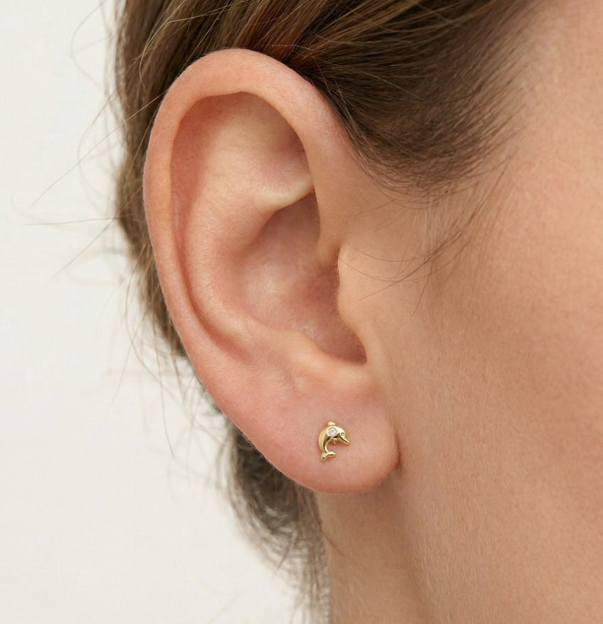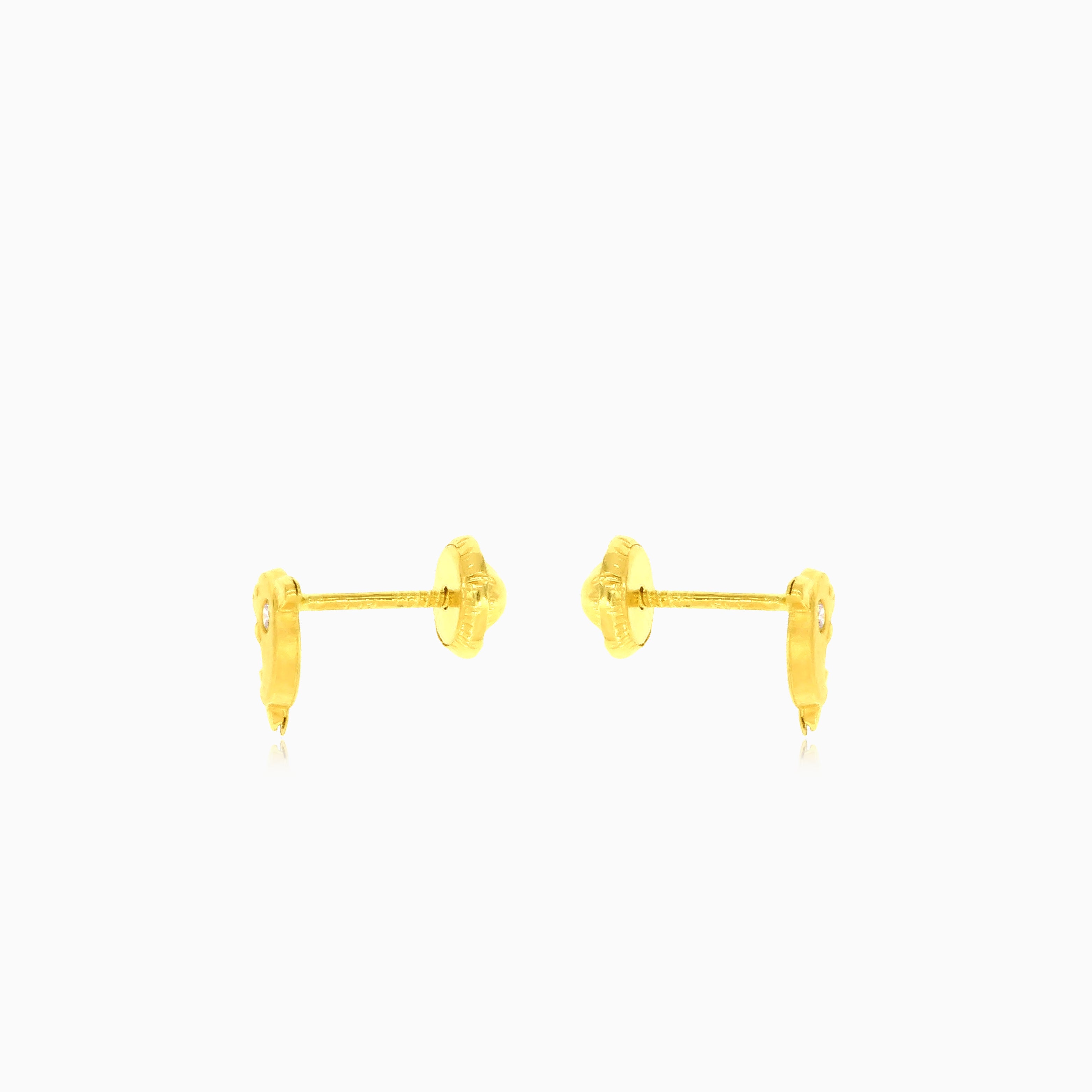 Fashion-forward 18kt yellow gold stud earrings adorned with lustrous round transparent cubic zirconia and secured by a stylish screwback closure.