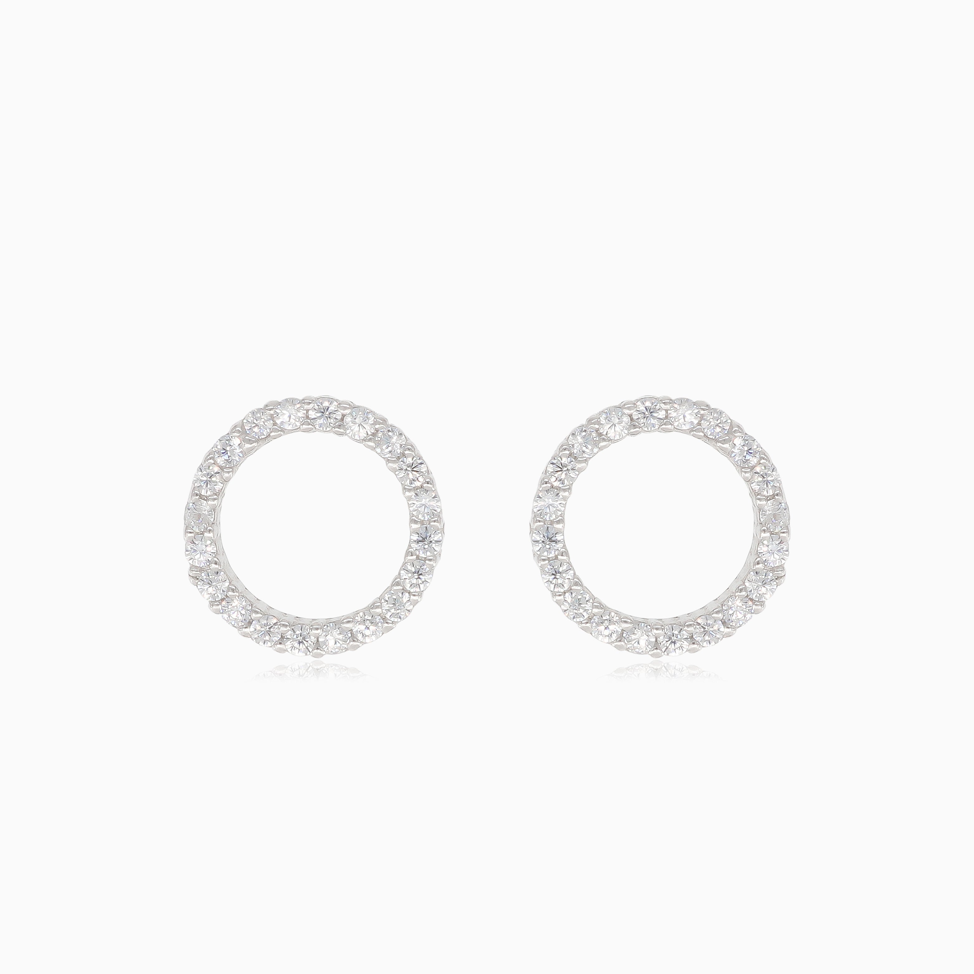 Elegant silver earrings featuring dazzling cubic zirconia circles and secure stud pousette closures for a timeless look.