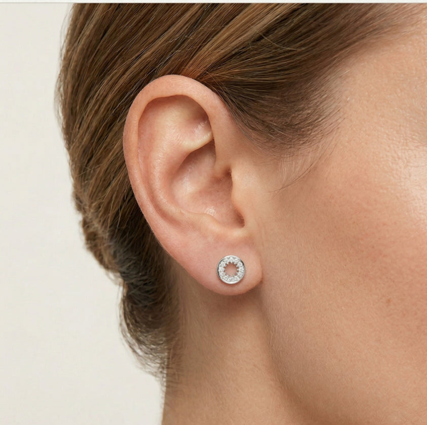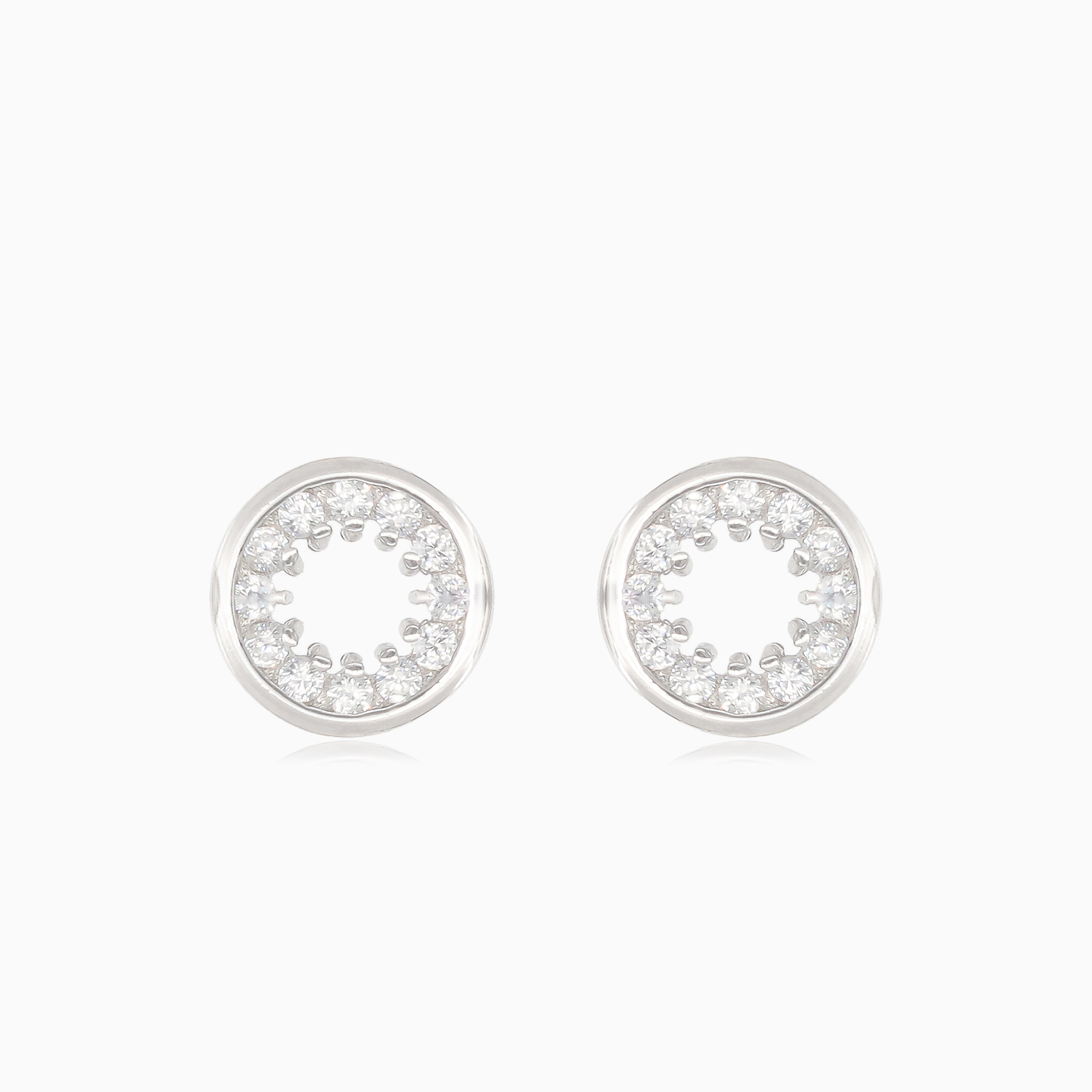 Silver round earrings with surrounding cubic zirconia