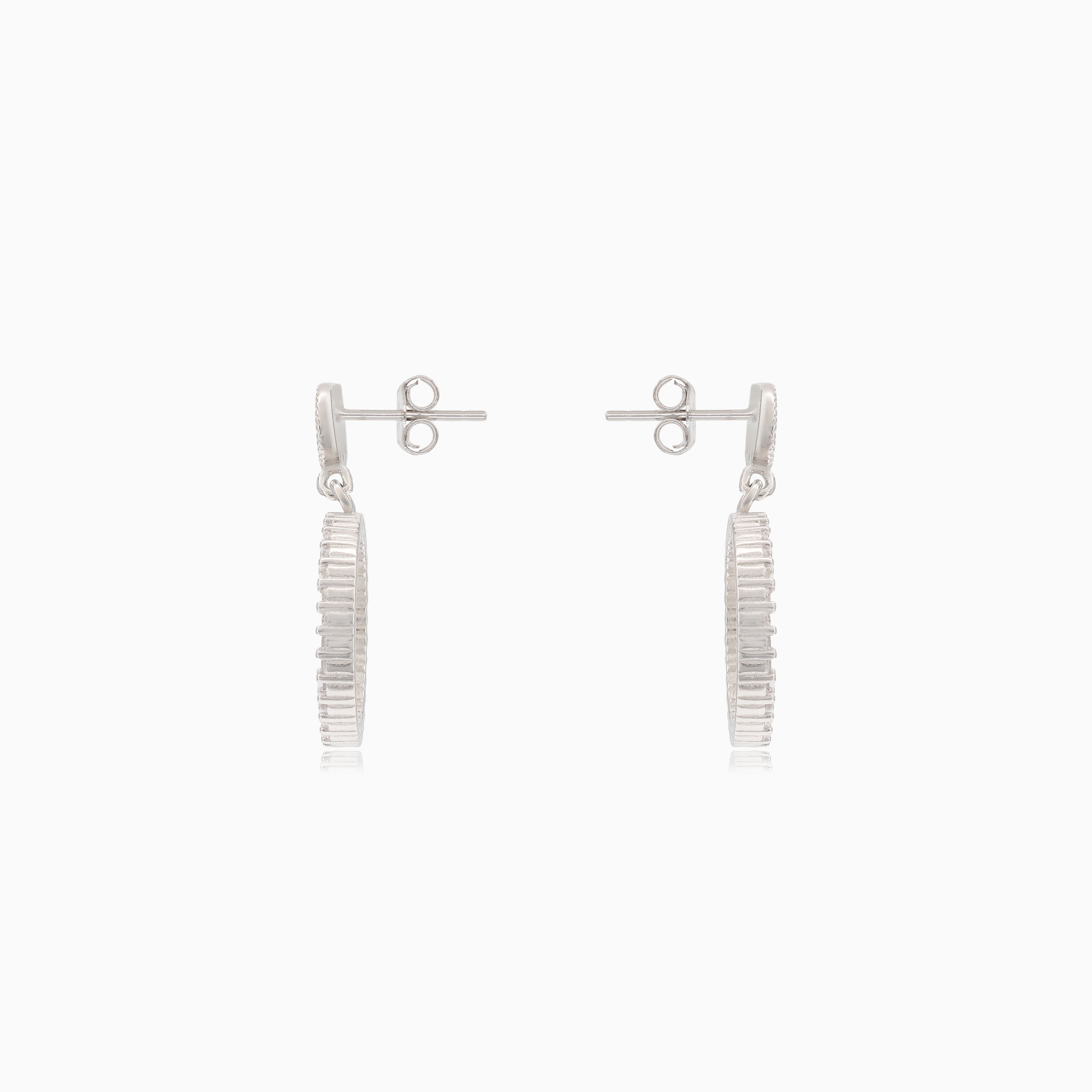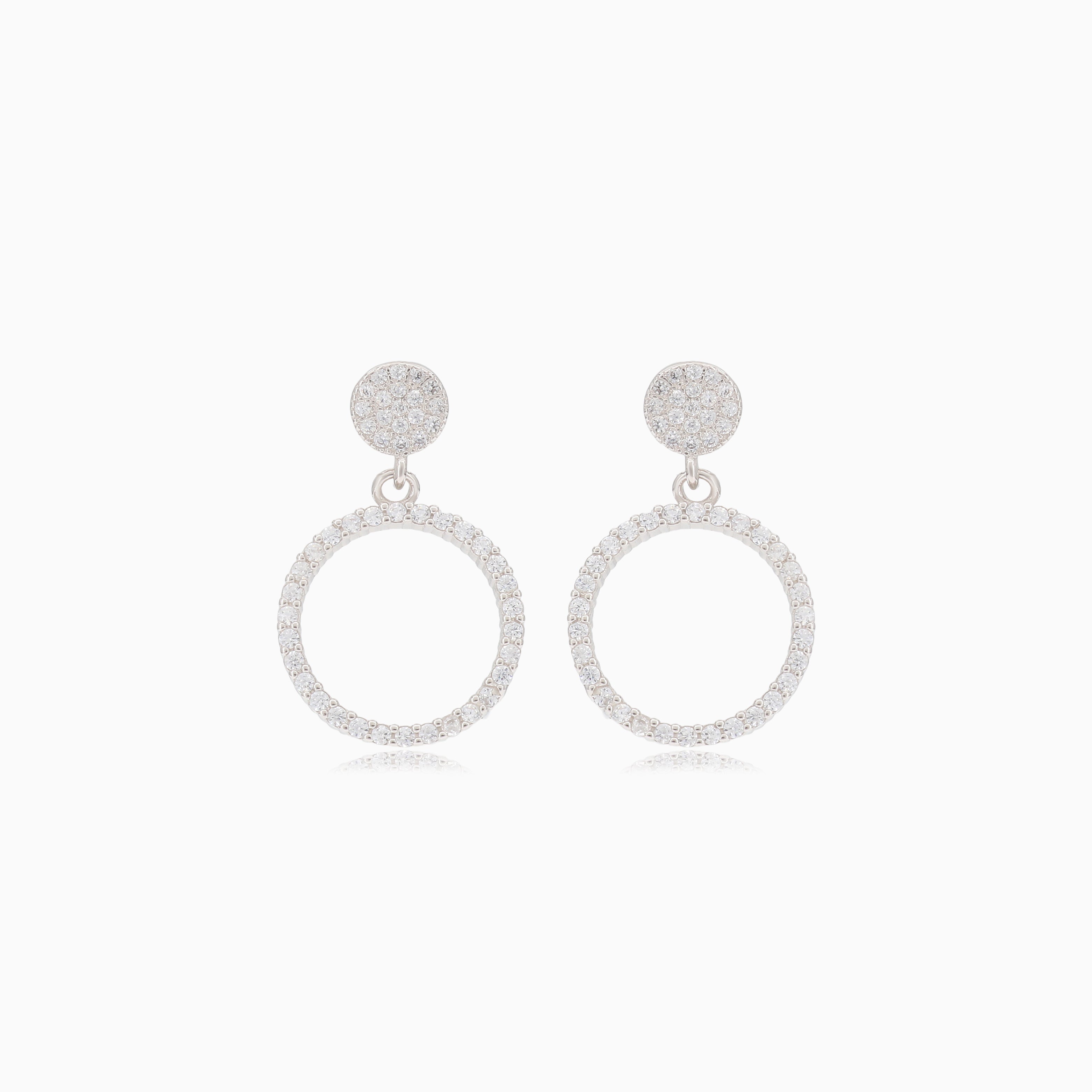 Add a touch of elegance to your ensemble with these stunning Silver Stud Earrings featuring dangling cubic zirconia circles, designed to catch the light and captivate attention.
