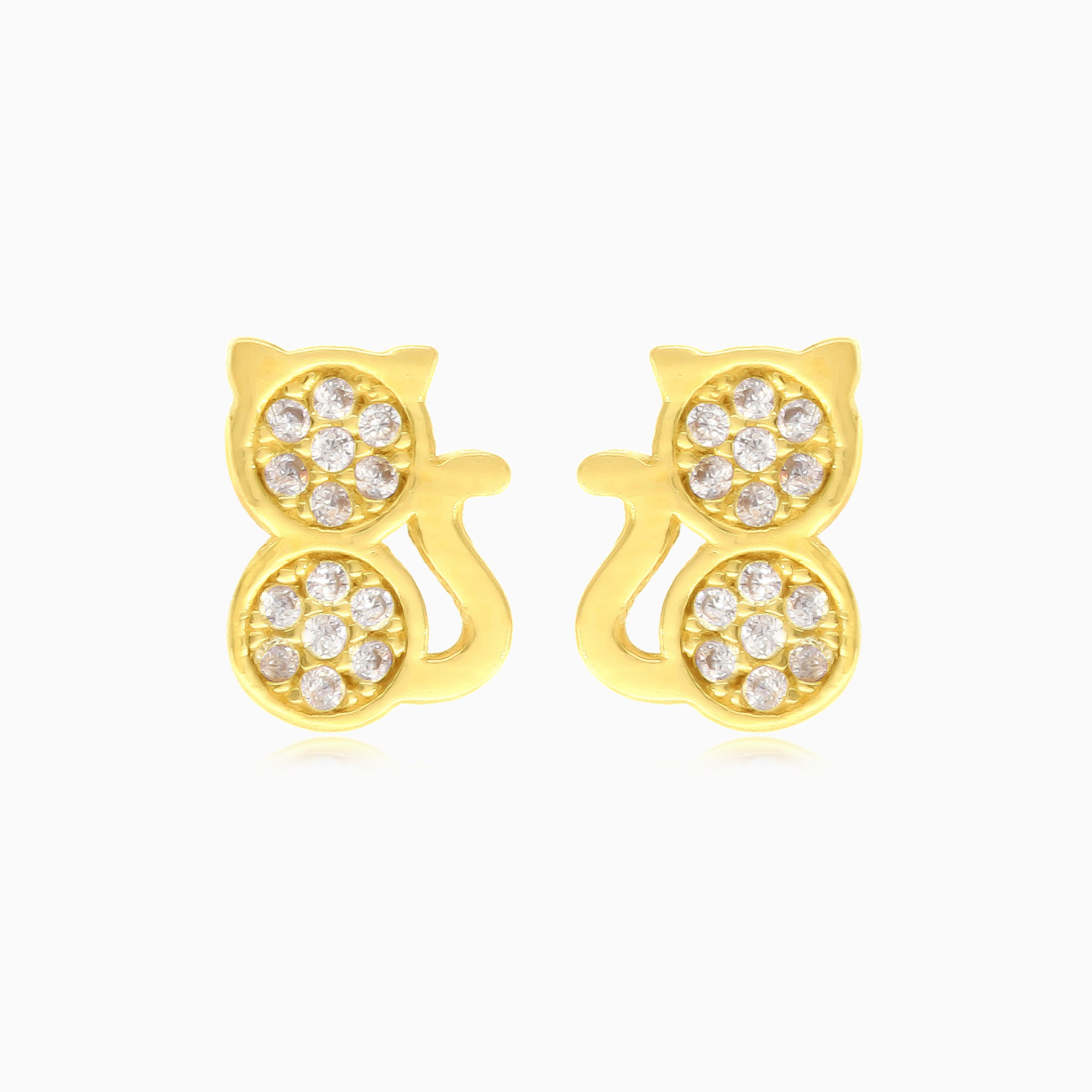 Cat stud earrings in yellow gold and cubic zirconia
