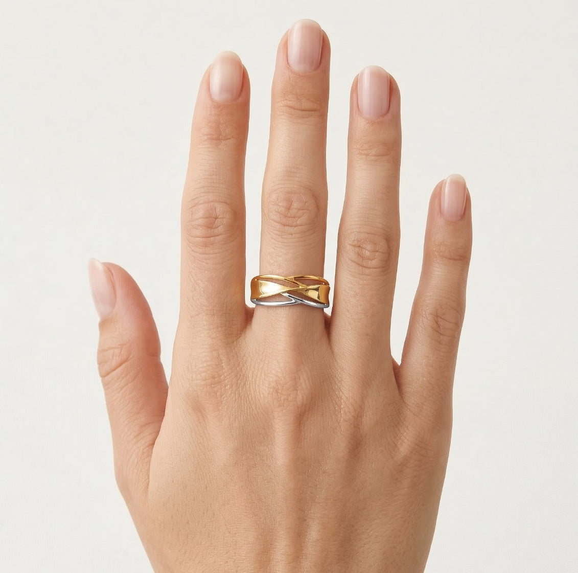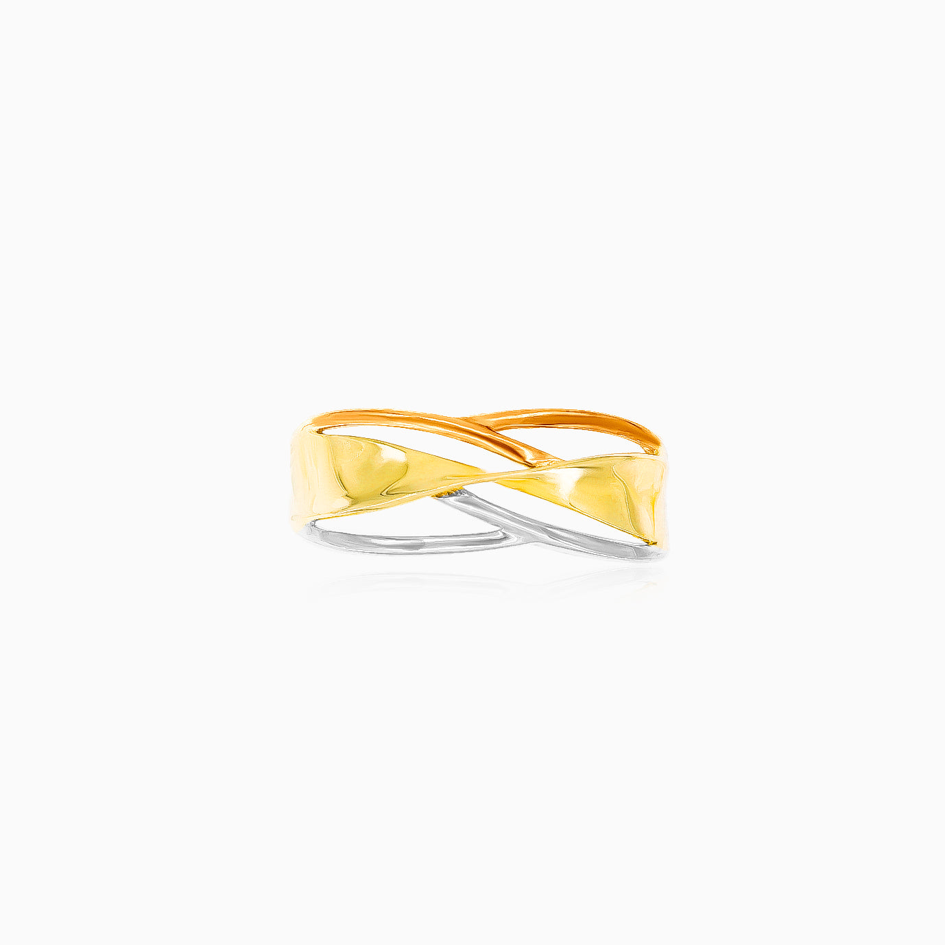 High shine tri-gold crossover ring