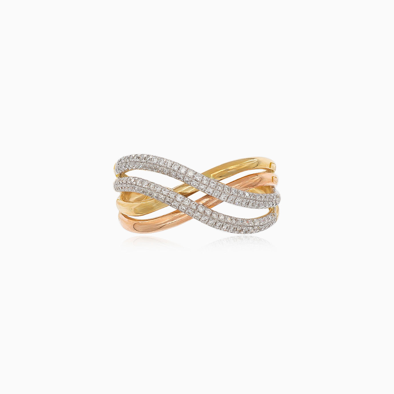 Twisted three tone gold diamond ring
