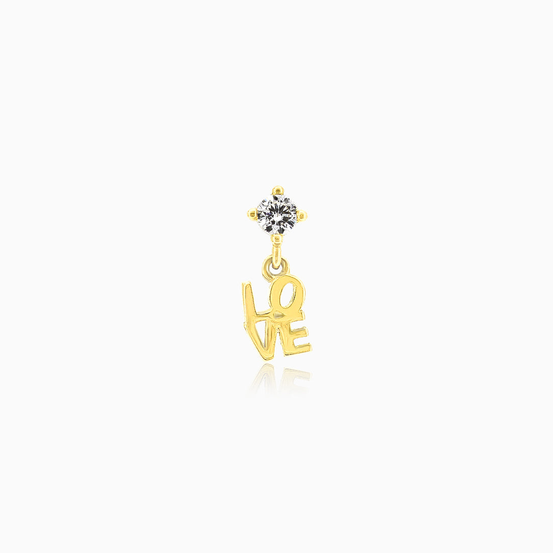 Chic cubic zirconia gold piercing with dangling love