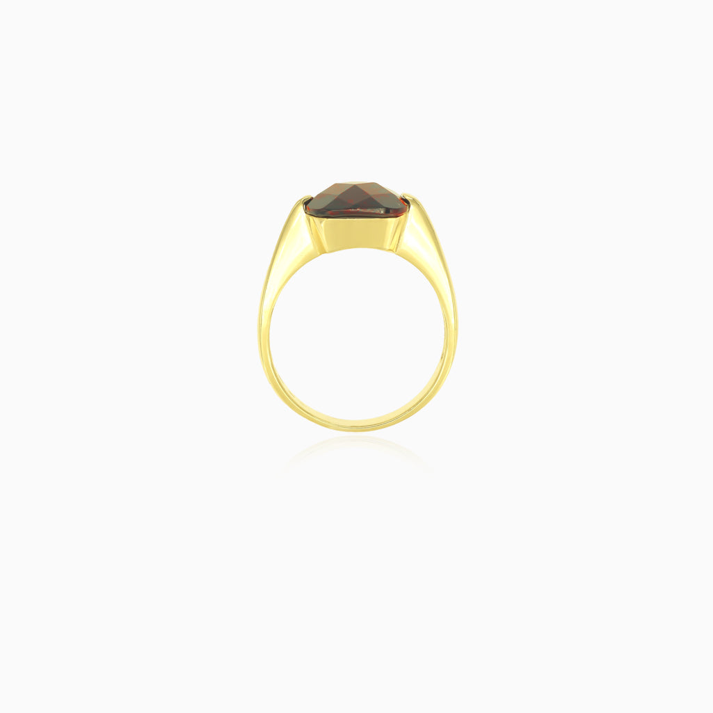 Adorn yourself with elegance wearing our women's ring featuring a garnet in cushion fine step-cut, held by a bar setting in 14kt yellow gold. This stunning ring adds a touch of sophistication to any outfit.