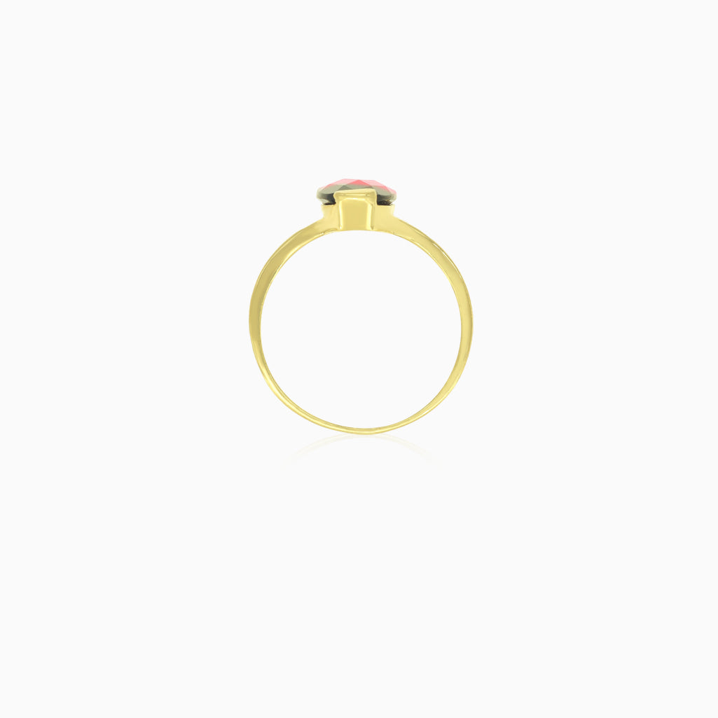 Garnet oval cut gold ring on bar set