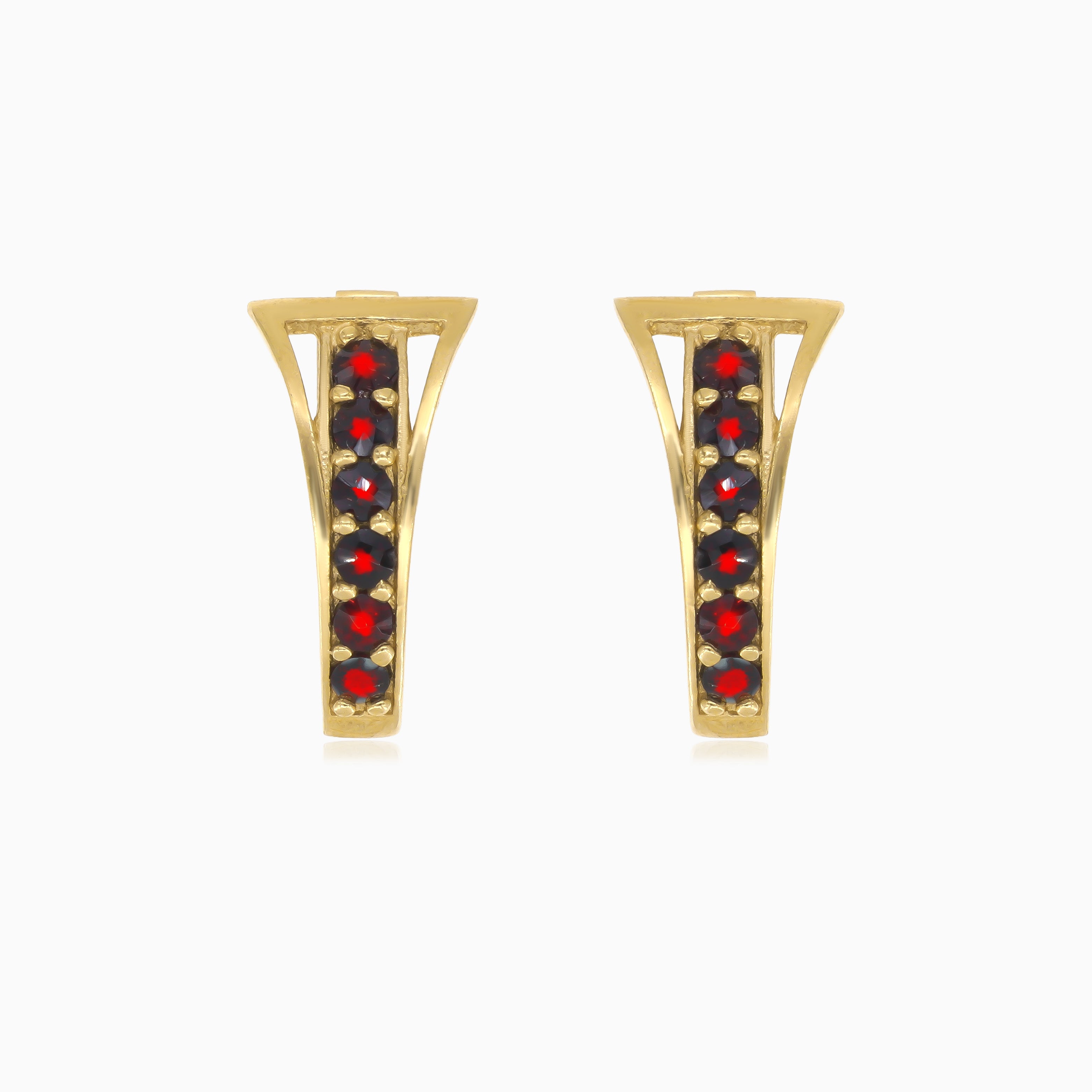 Embrace timeless elegance with our fine step-cut garnet drop earrings. The 14kt yellow gold band cradles a stunning round stone in a secure prong setting and latch back closure. These earrings combines classic charm with modern grace, making it the perfect accessory for any occasion.