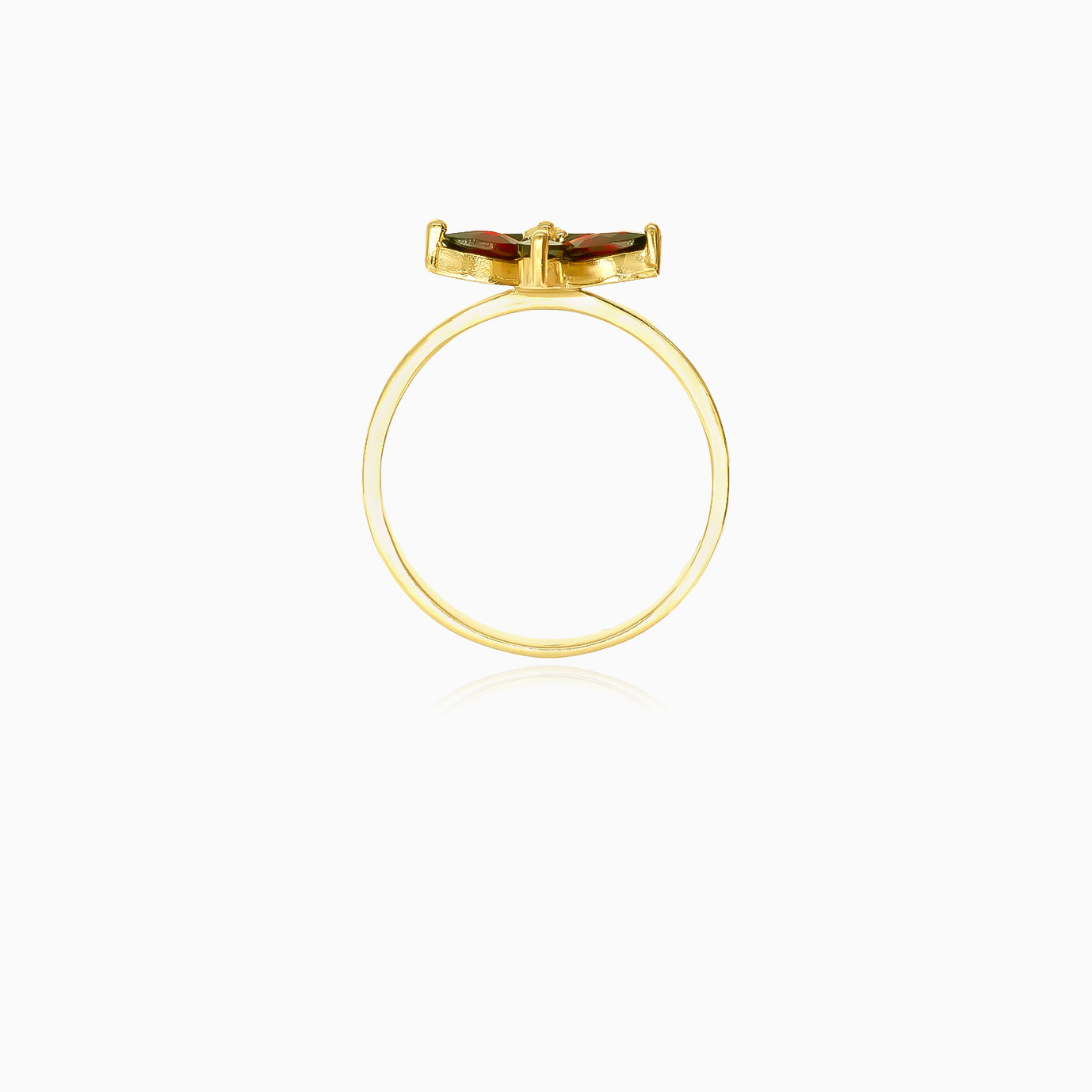 This exquisite women’s ring features a vibrant marquise-cut garnet set in 14kt yellow gold, arranged in a delicate flower design. The unique marquise shape of the garnet adds a touch of elegance, while the floral motif creates a feminine and timeless piece, perfect for any occasion.