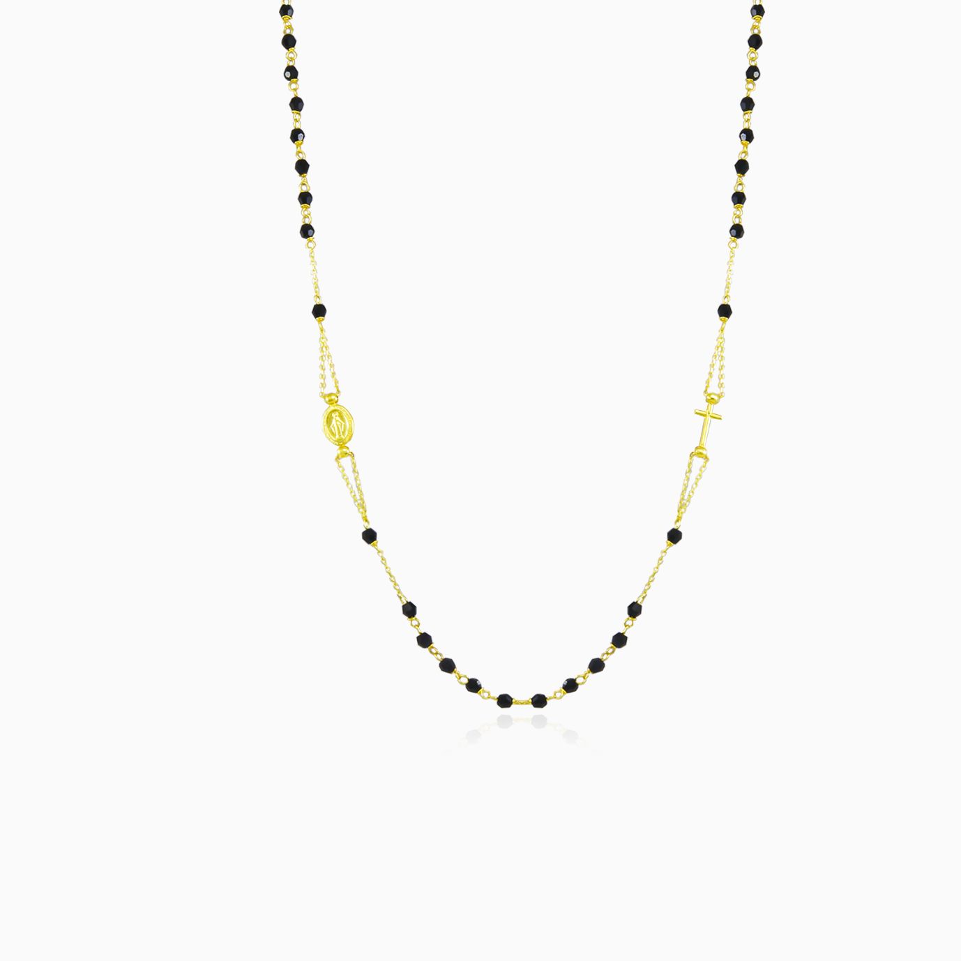 14K yellow gold rosary necklace with onyx.