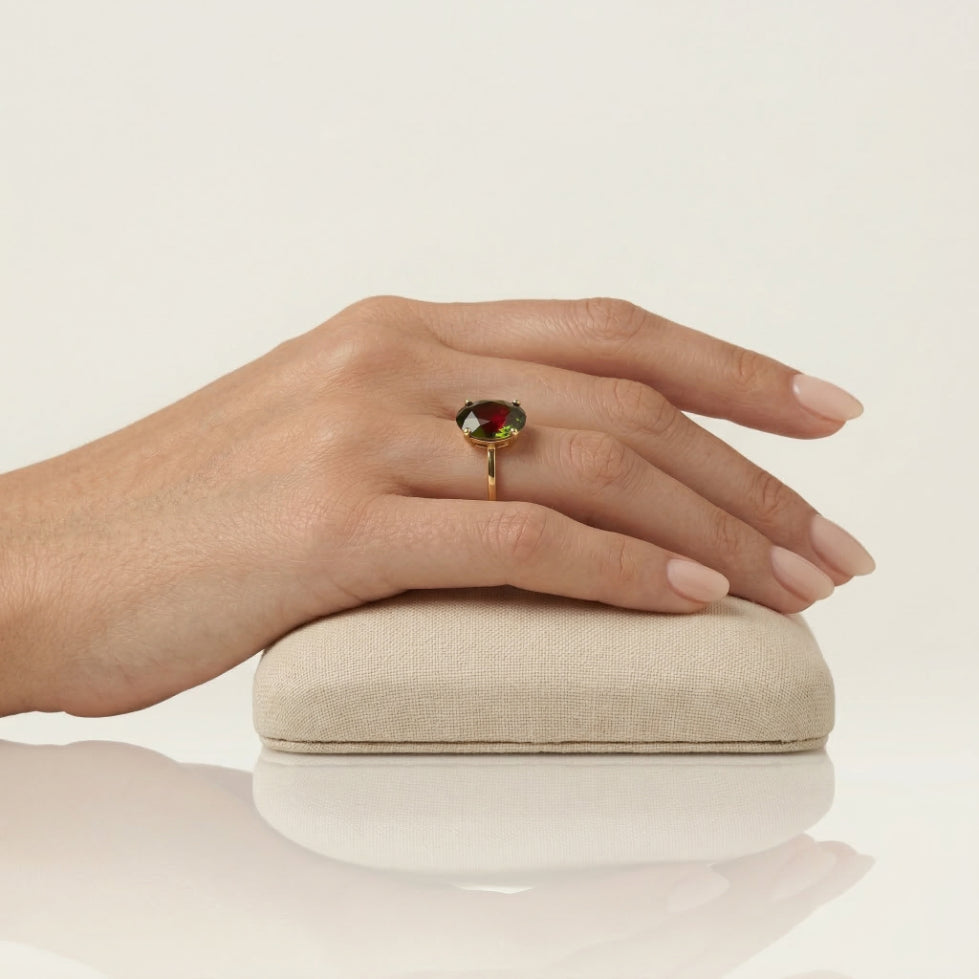 Oval garnet elegance in 14kt gold